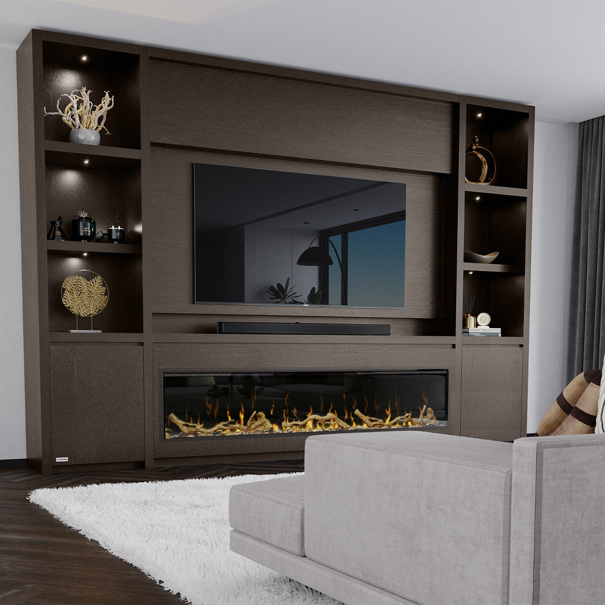 Cinewall Andrew Queen-size (280-320 cm) heeft een verfijnd samenspel tussen open vakken en gesloten deuren. Meer informatie