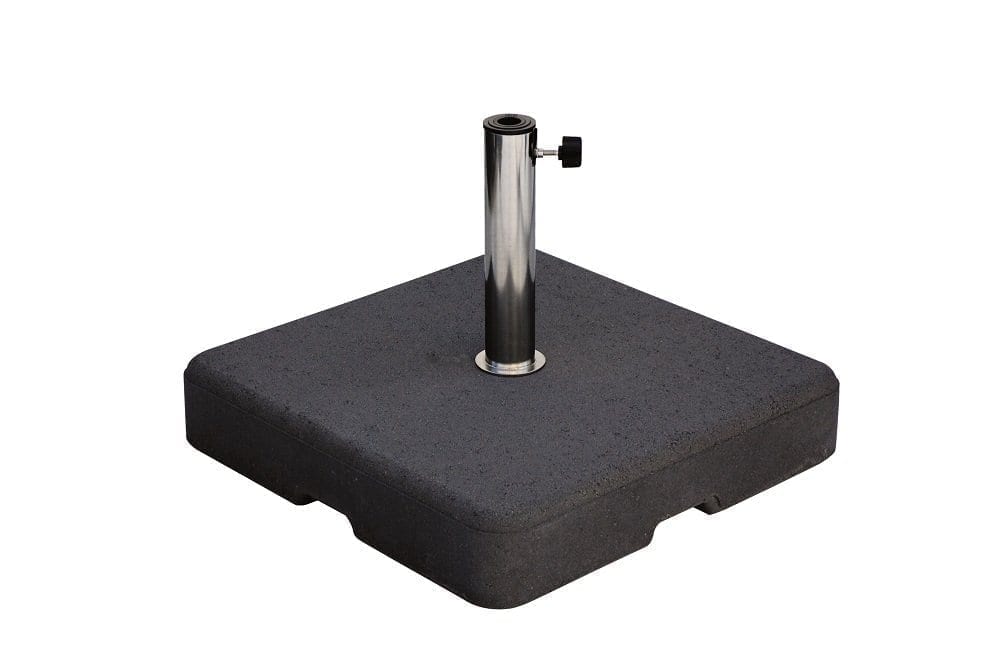 Parasolvoet 60kg; 59x59x9,5cm; inclusief RVS buis. Geschikt voor buis Ø25-55 mm