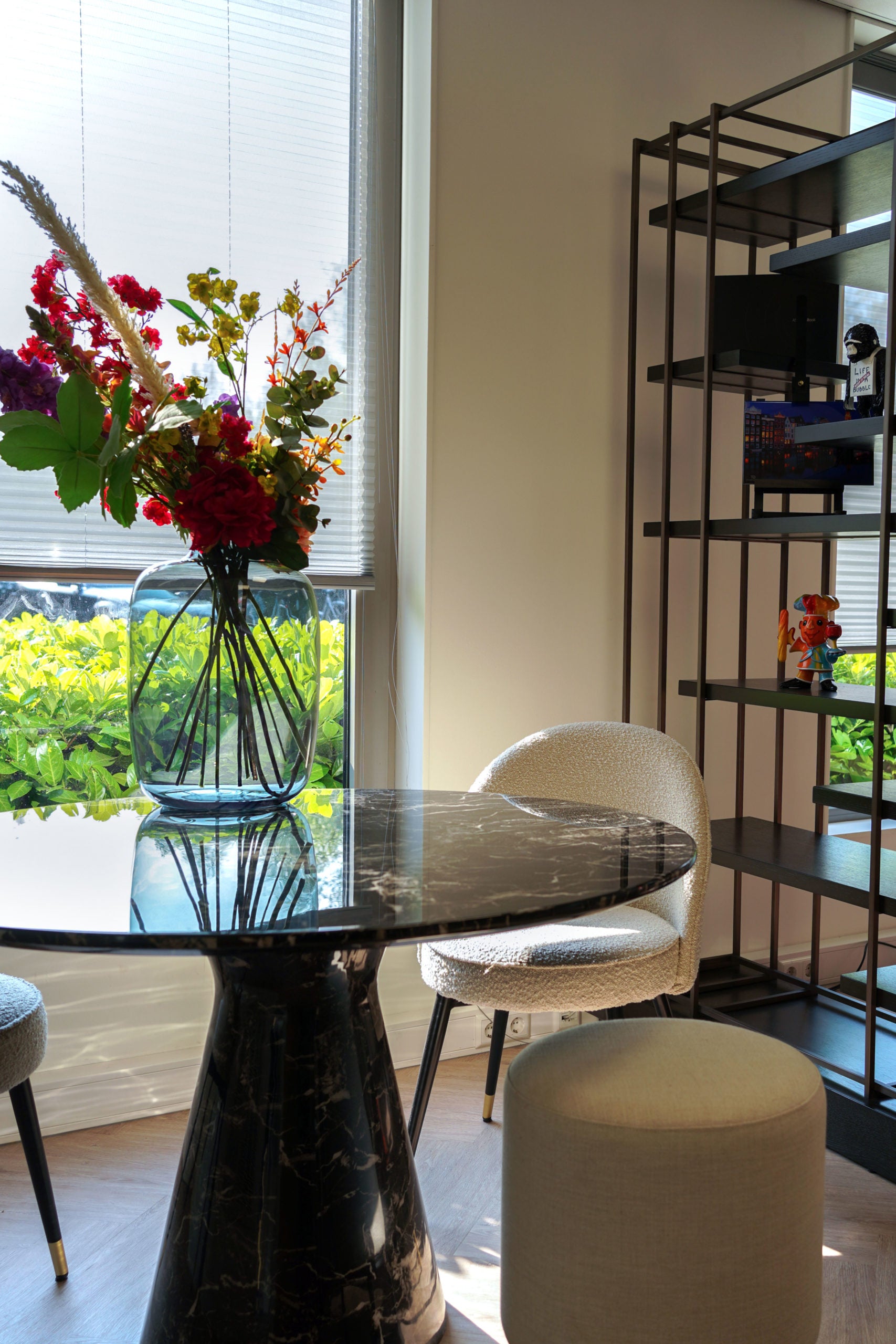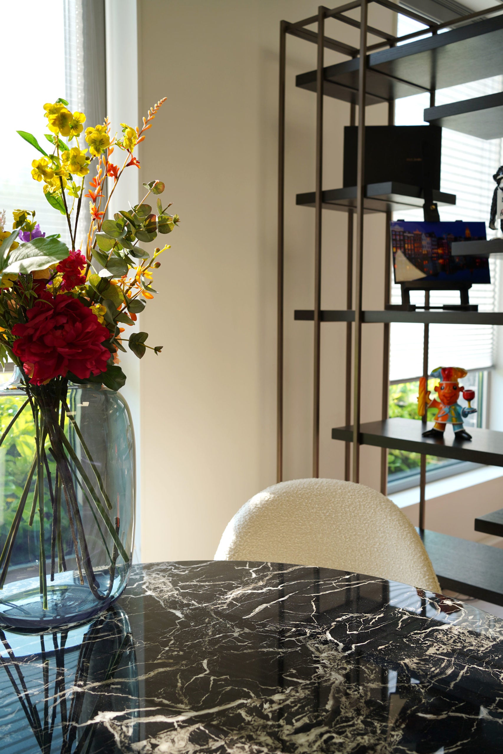 Rishi had zijn huiswerk al goed voorbereid, dus we konden een aantal stappen overslaan. We hebben afgesproken in de showroom van Eichholtz. Tijdens een heerlijke lunch heeft Rishi zijn wensen, inspiratie, moodboard en kleurenpalet getoond.