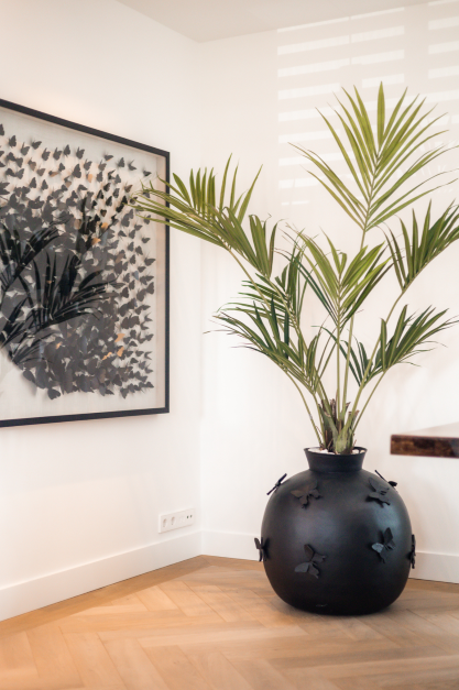 Het huis ziet er adembenemend uit. Veel warme tinten, bouclé stof en kunstplanten van Silk-ka. De bewoners waren zeer tevreden over de service en hebben hierna nog tuinmeubels besteld van Borek. Deze zijn ook netjes uitgepakt, gemonteerd en op de juiste plaats gezet.