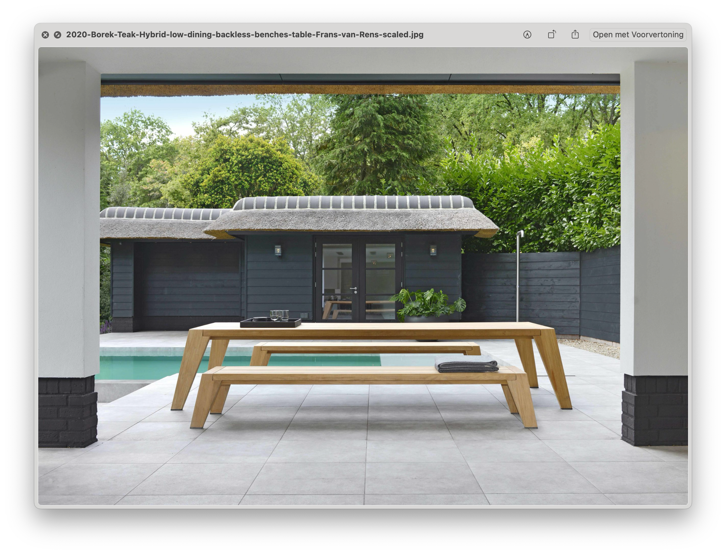 Frans van Rens heeft meerdere collecties voor Borek ontworpen. Zo ook deze fraaie Hybrid lijn. Het strakke teakhout is gecombineerd met aluminium. De lage fauteuils zijn met dikke en all weather kussens aangekleed. Deze comfortabele low dining stoelen kunnen aangeschoven worden aan de low dining eettafel, aangezien de fauteuils voorzien van wielen. Onbehandeld teakhout vergrijst geleidelijk en kan worden gereinigd met Borek Teak Cleaner. Om de natuurlijke, goudbruine kleur langer in stand te houden kan vergrijsd teak opnieuw zijn natuurlijke kleur krijgen, door het teak te behandelen met Borek Teak Sealer.