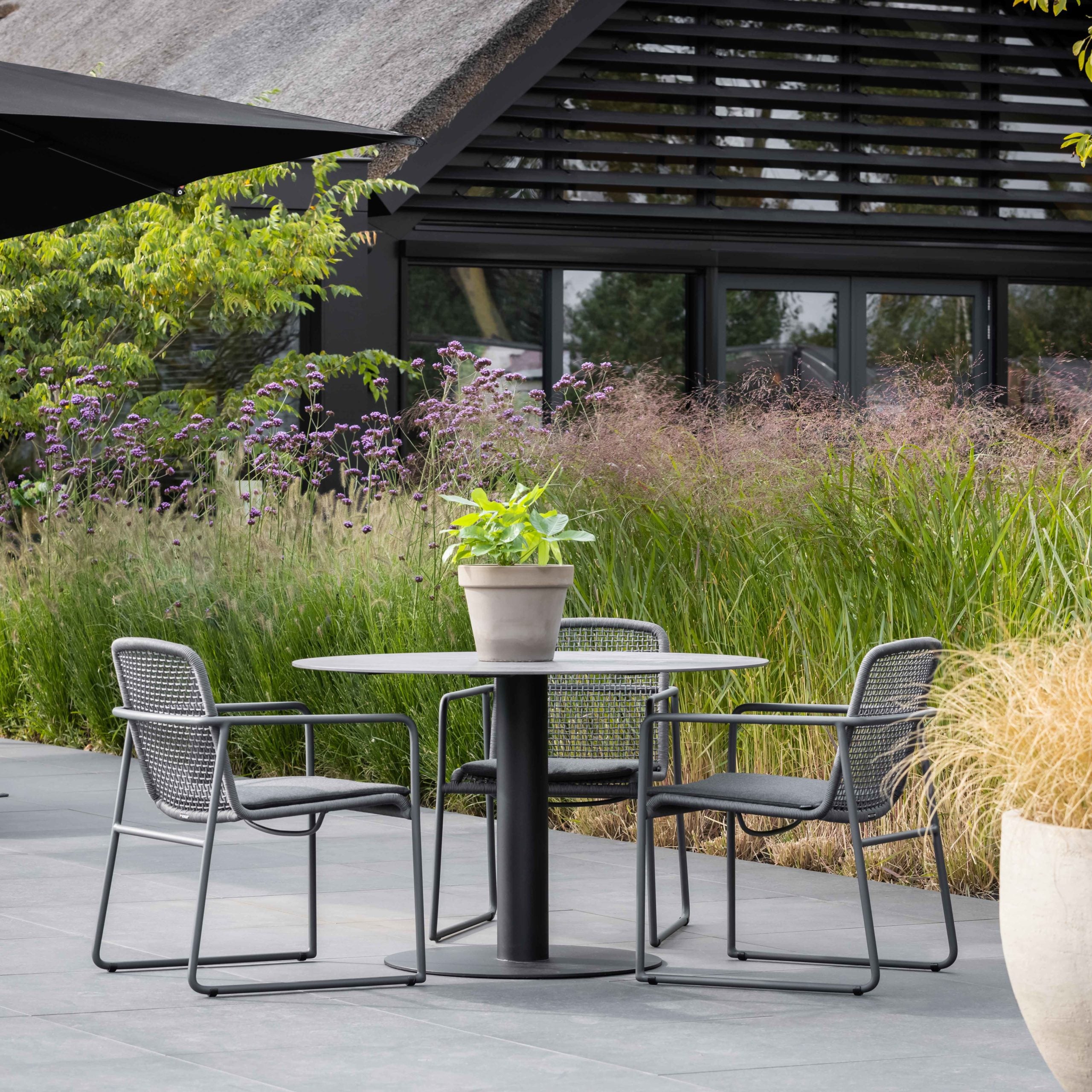 Stoel Mira vormt met Peniche een succes combi. Een fijne stoel met een actieve zit van Ardenza Rope, zowel in low als high dining. Relax around the clock.