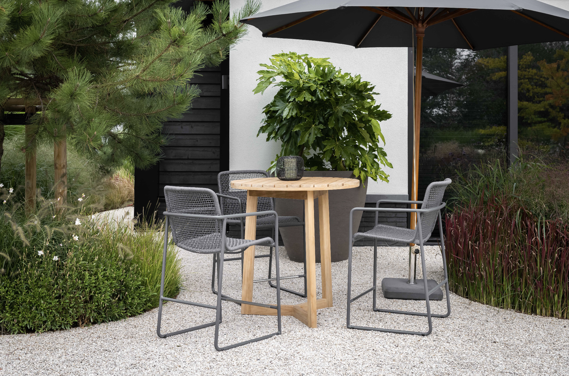 De gemêleerde Ardenza ropes zijn door en door gekleurd en samen met het strakke aluminium frame zijn de Mira stoelen waterafstotend, uv-bestendig en schimmelwerend. De kleurcombinaties zijn donkergrijs met antraciet en wit-taupe met chalk. Hierdoor schuiven deze stoelen ook mooi aan bij een teak houten tafel.
