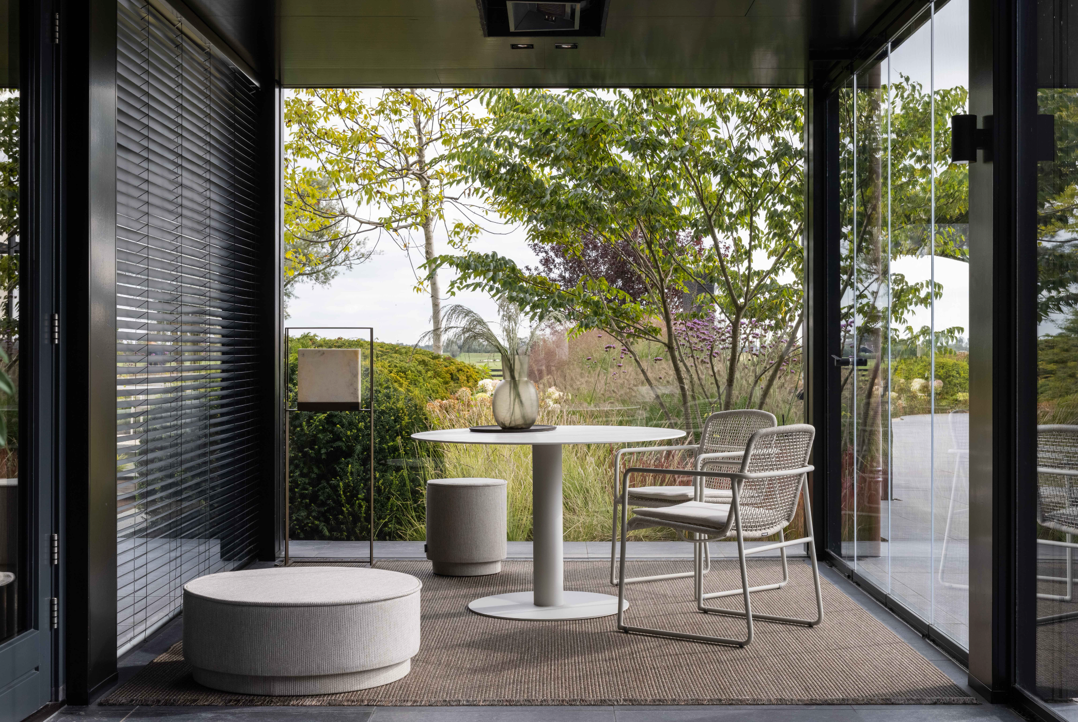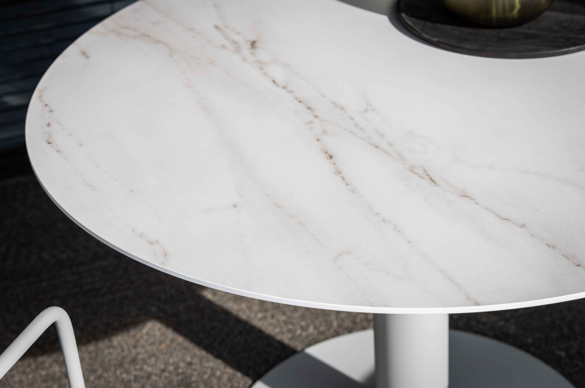 De ronduit opvallende collectie Peniche blinkt uit in eenvoud. Maar schijn bedriegt, zo bewijst het materiaalgebruik van de serie ronde tafels. Het frame is verkrijgbaar in kleur chalk of antraciet. De tafelbladen zijn uitgevoerd in hoogwaardig Dekton®, dat de fraaie uitstraling van natuursteen combineert met alle voordelen van composiet. Kleur rem heeft een marmerlook die licht en warm oogt. In de kleur trilium heeft de tafel nog het meest weg van een boomschors.