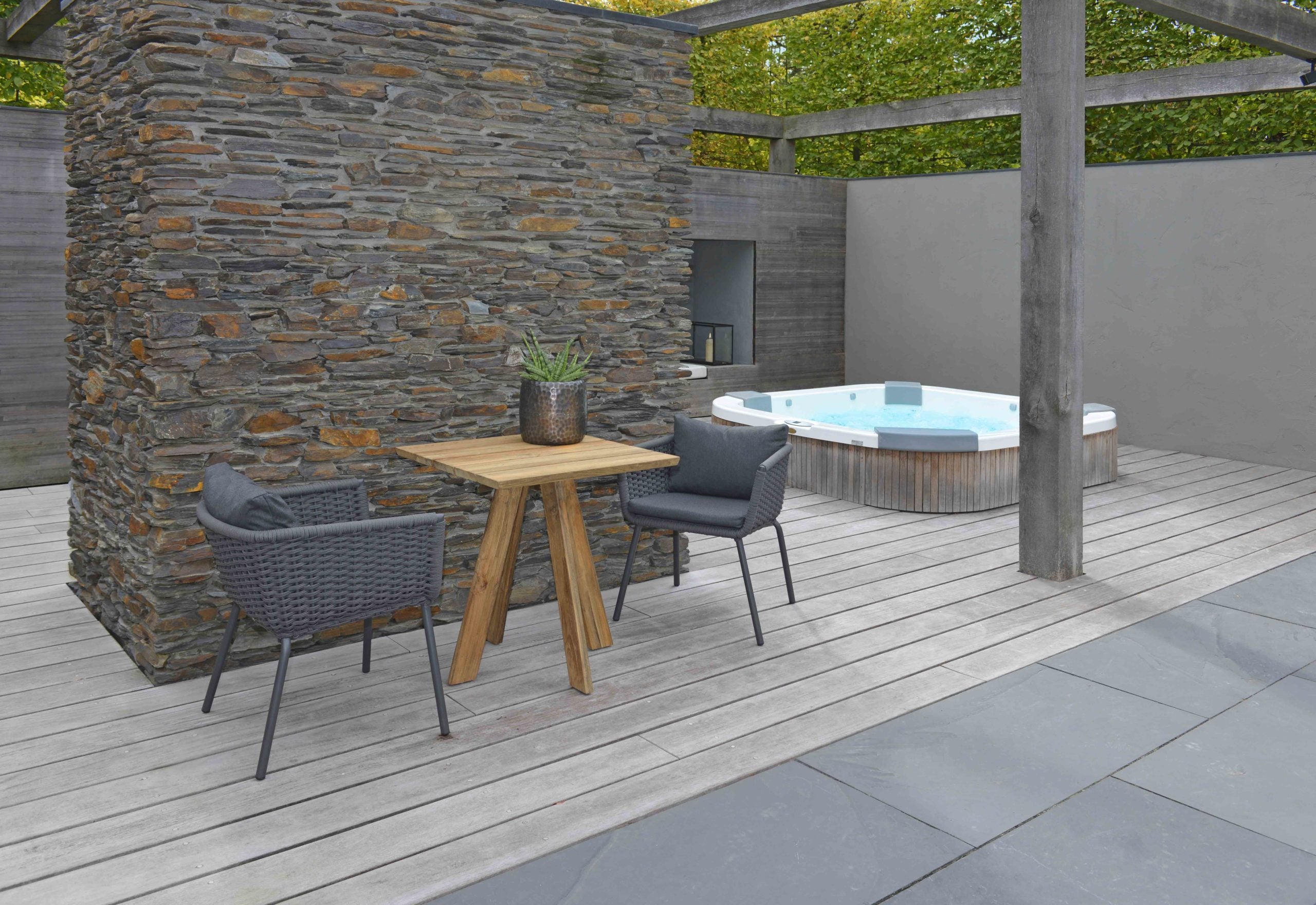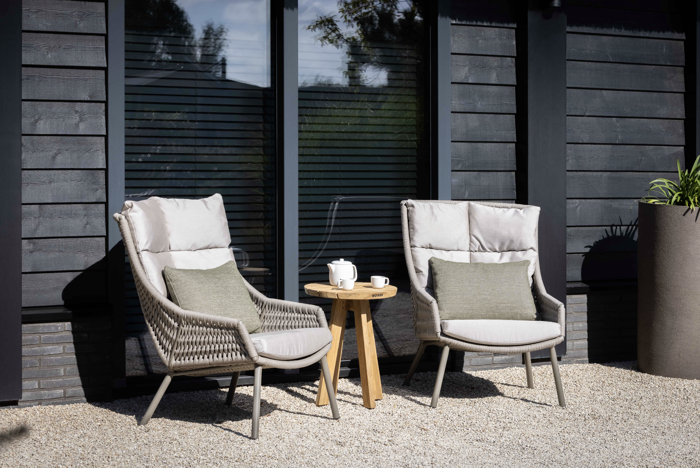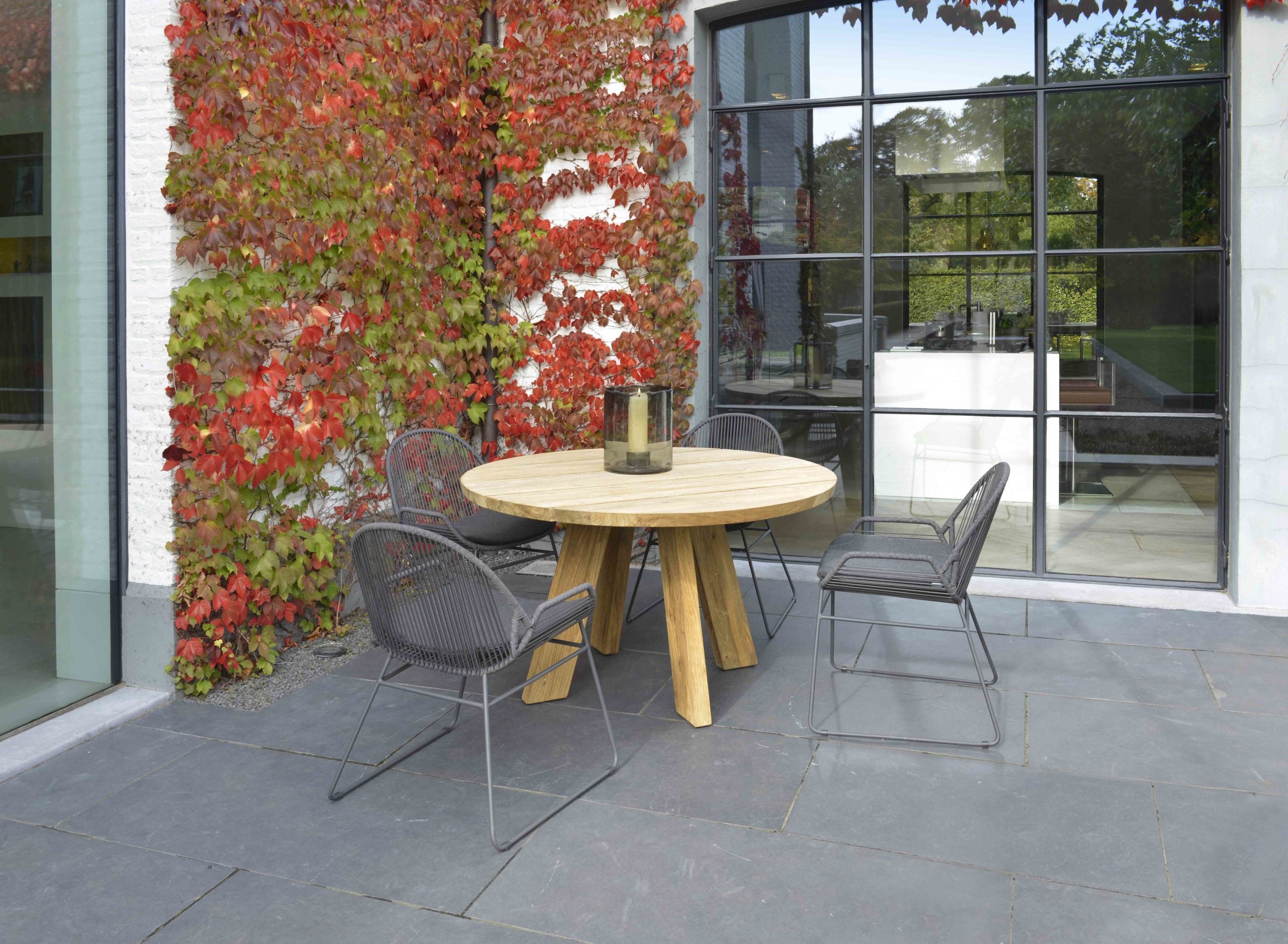 De tafels uit de Tarifa collectie zijn uit reclaimed teak hout vervaardigd. Dit soort teak krijgt op deze manier een tweede leven en heeft hierdoor ook zijn unieke uitstraling. Het hout heeft oneffenheden her en der, dat geeft exact de charme weer van dit model. Het hout zal na verloop van tijd vergrijzen. Het onderhouden van dit model is eenvoudig met de Borek Teak Cleaner.