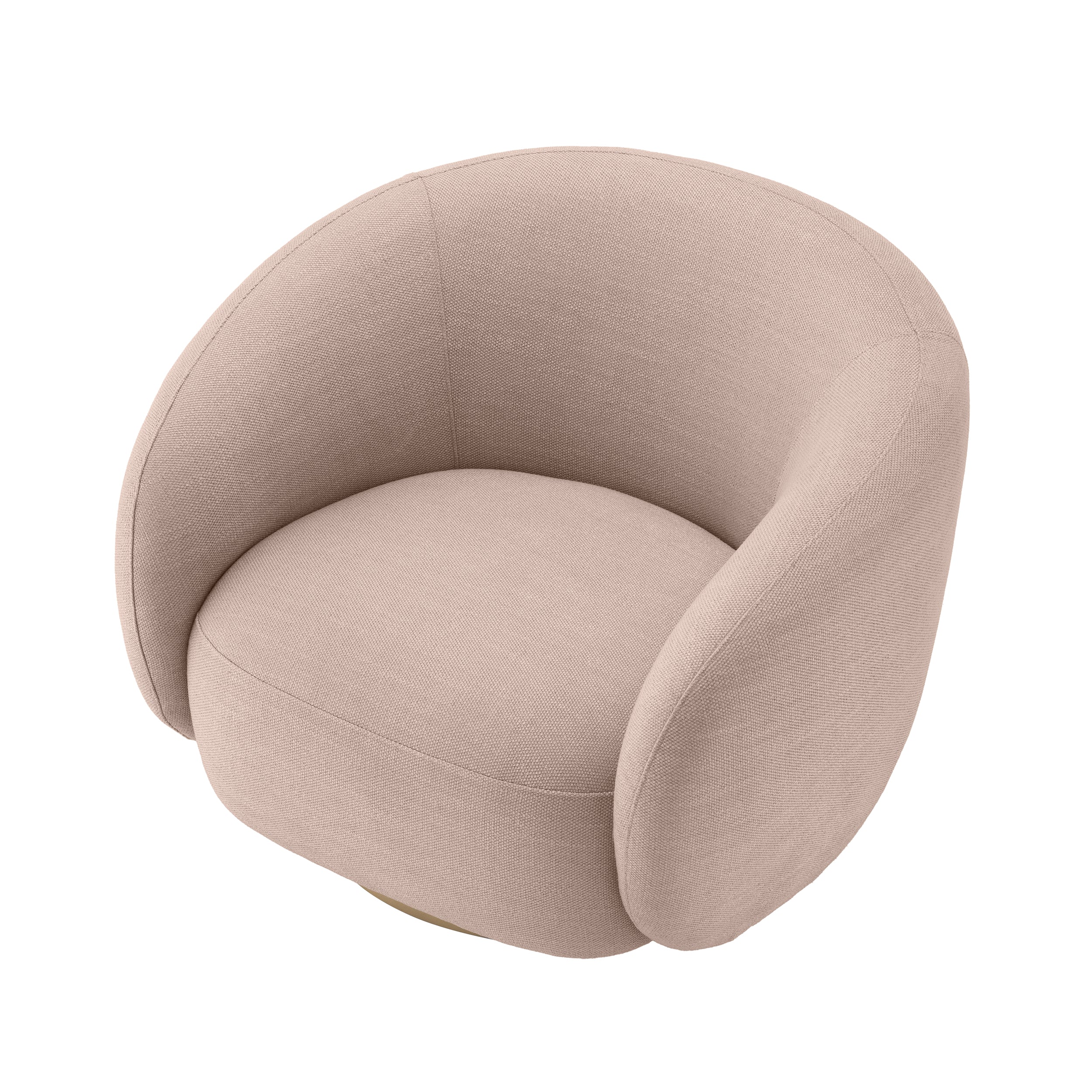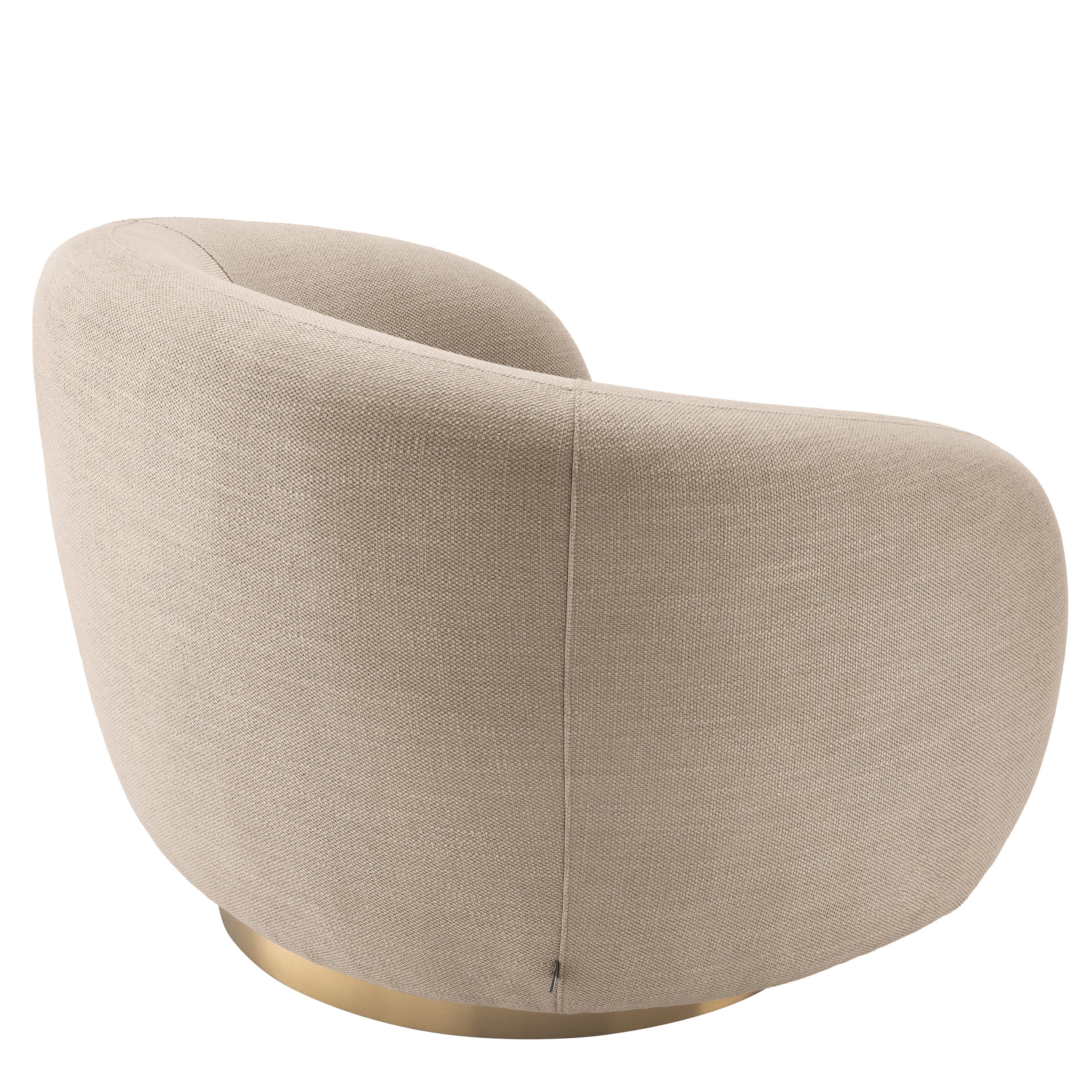 Draai en ontspan naar hartenlust in Fauteuil Brice, een ideale aanvulling op uw leefruimte. Gezellig en eigentijds, deze elegant gebogen draaifauteuil heeft een stijlvolle witte Avalon bekleding en een draaivoet van geborsteld messing.