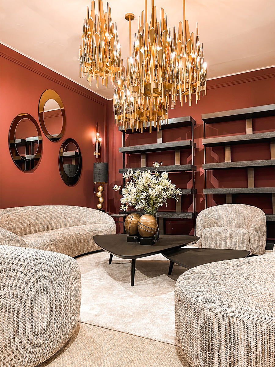 Na ontvangst in de showroom, optioneel met heerlijke lunch, nemen we uitgebreid de tijd om alle 60+ stijlkamers van Eichholtz te bekijken.