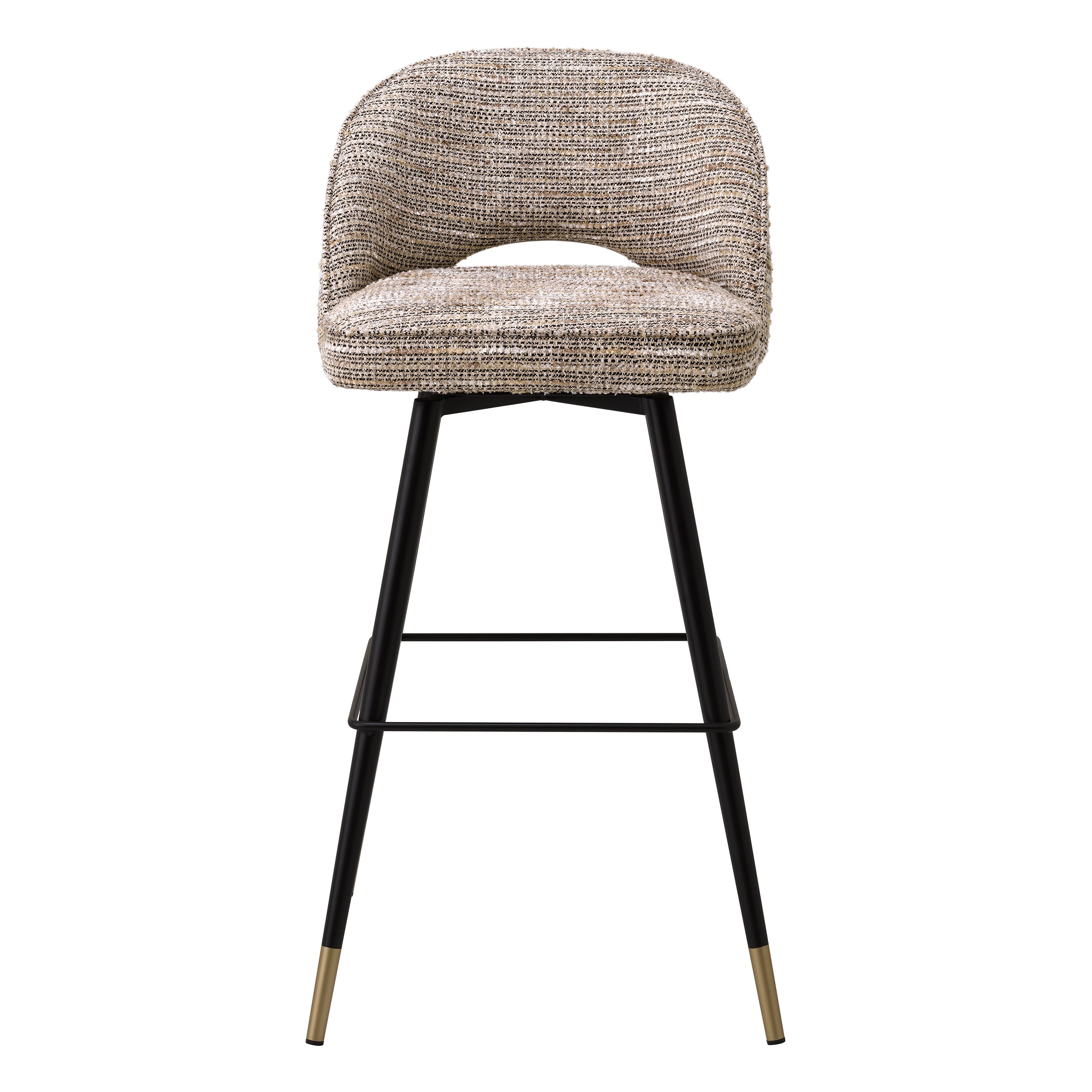 Creëer een wow-waardige eetkamer met de Cliff Bar Stool. die wordt geleverd in een 2-delige set. Met zwarte taps toelopende poten met gouden doppen en een Mademoiselle beige bekleding. heeft elke barkruk een armloze rugleuning die aan de onderkant open is voor de zitting. Combineer met eetkamerstoelen en barkrukjes uit deze serie.