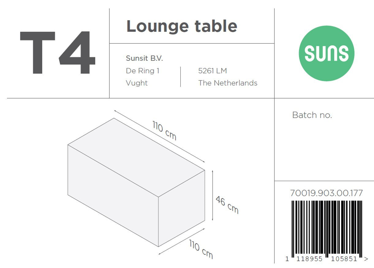 - Afmeting hoes: T4 : 110 x 110 x 46 cm | Inclusief kussen