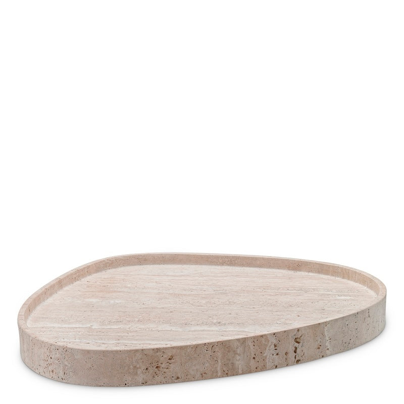 Het Arman dienblad van Eichholtz is een subtiele blikvanger die natuurlijke elegantie en functionaliteit combineert. Vervaardigd uit massief travertin, toont dit accessoire de authentieke schoonheid van natuursteen – van kleurnuance tot textuur. De organische vorm geeft het geheel een zachte, ambachtelijke uitstraling.