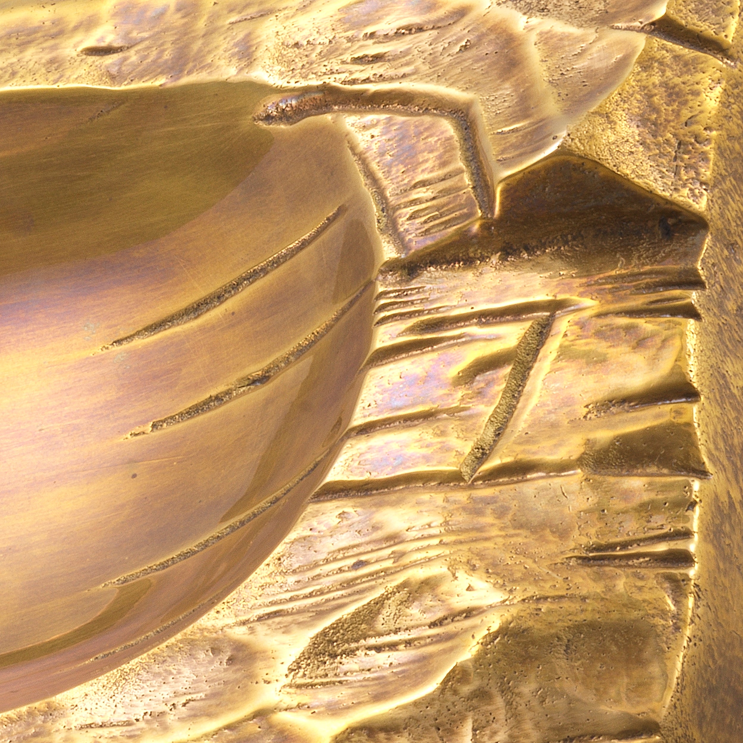 Tray Chiasso zal prachtig werken als een sculpturaal statement op een console of salontafel. Het kan ook dienen als opbergplaats voor sleutels. sieraden en andere kleine voorwerpen. Gegoten uit massief messing en voorzien van een vintage messing afwerking. lijkt het alsof het uit een stuk rots is gebeiteld.