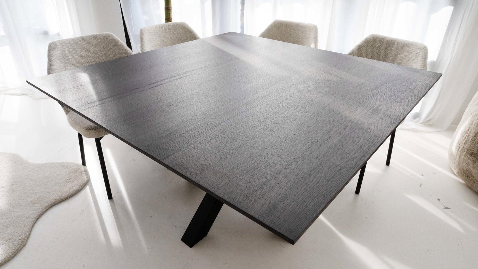 Ervaar moderne elegantie met onze op maat gemaakte Maestro vierkante eiken eettafel.