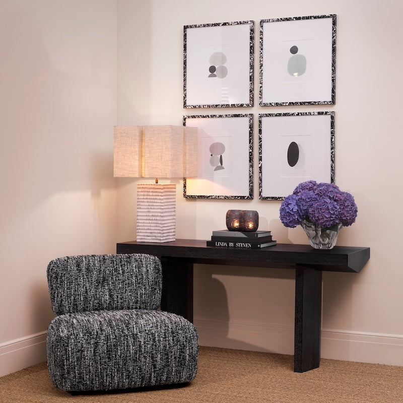 De Leon fauteuil van Eichholtz is een luxe accentstoel met een vintage uitstraling. Het lage profiel, de diepe zit en de rijke bekleding in Bouclé sonata black maken deze fauteuil tot een stijlvol en comfortabel statement.