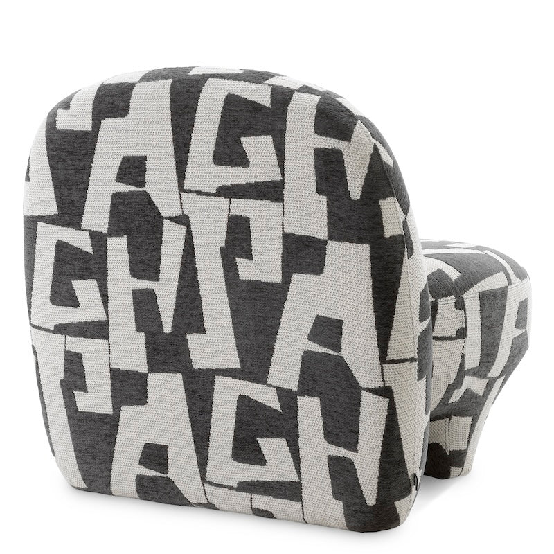 De Lugo fauteuil van Eichholtz is een krachtig en eigentijds ontwerp met een uitnodigend karakter. De diepe zitting en strakke lijnen worden perfect aangevuld door de rijke bekleding in Brooklyn black – een luxueuze stof met een elegante, matte structuur.
