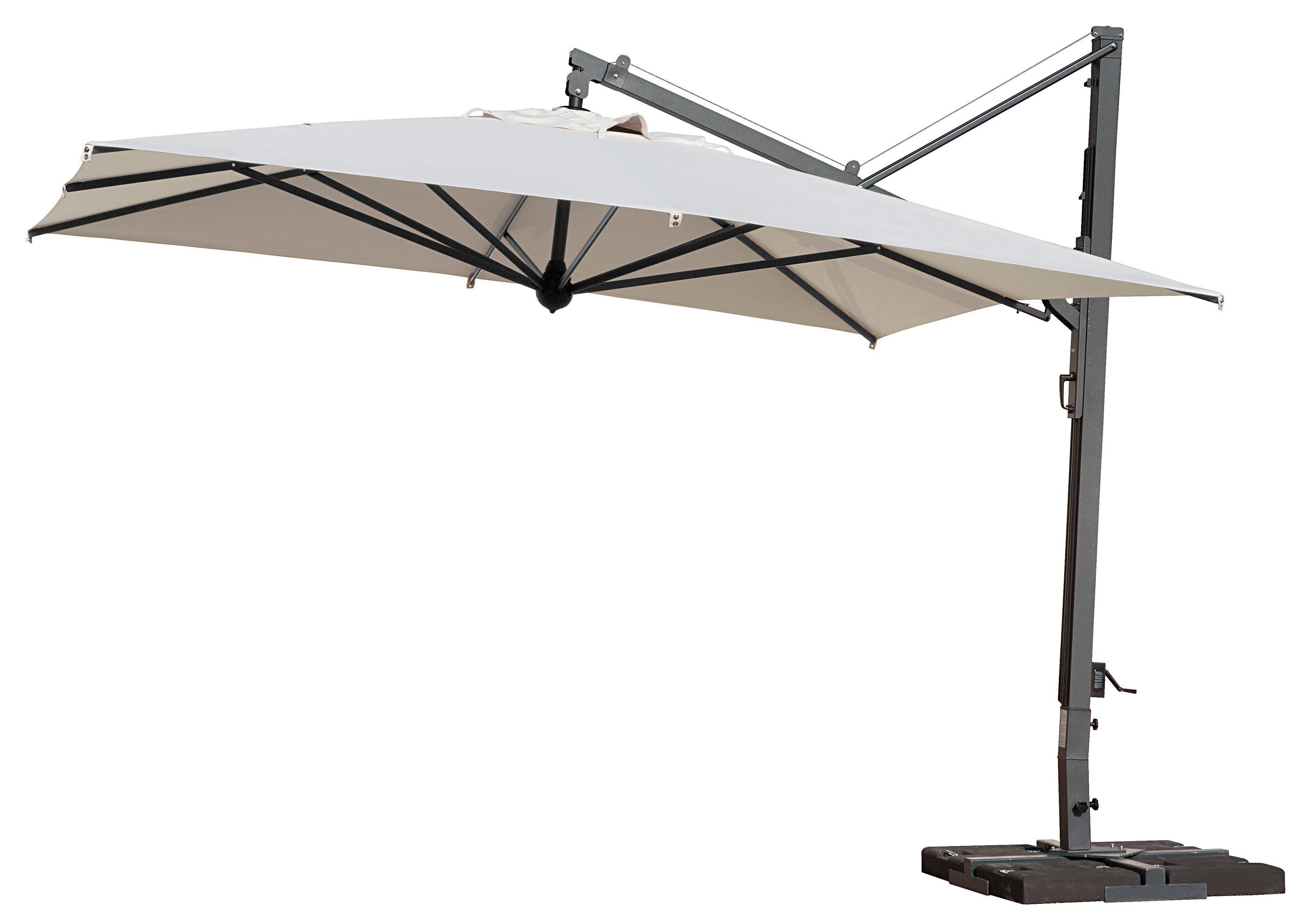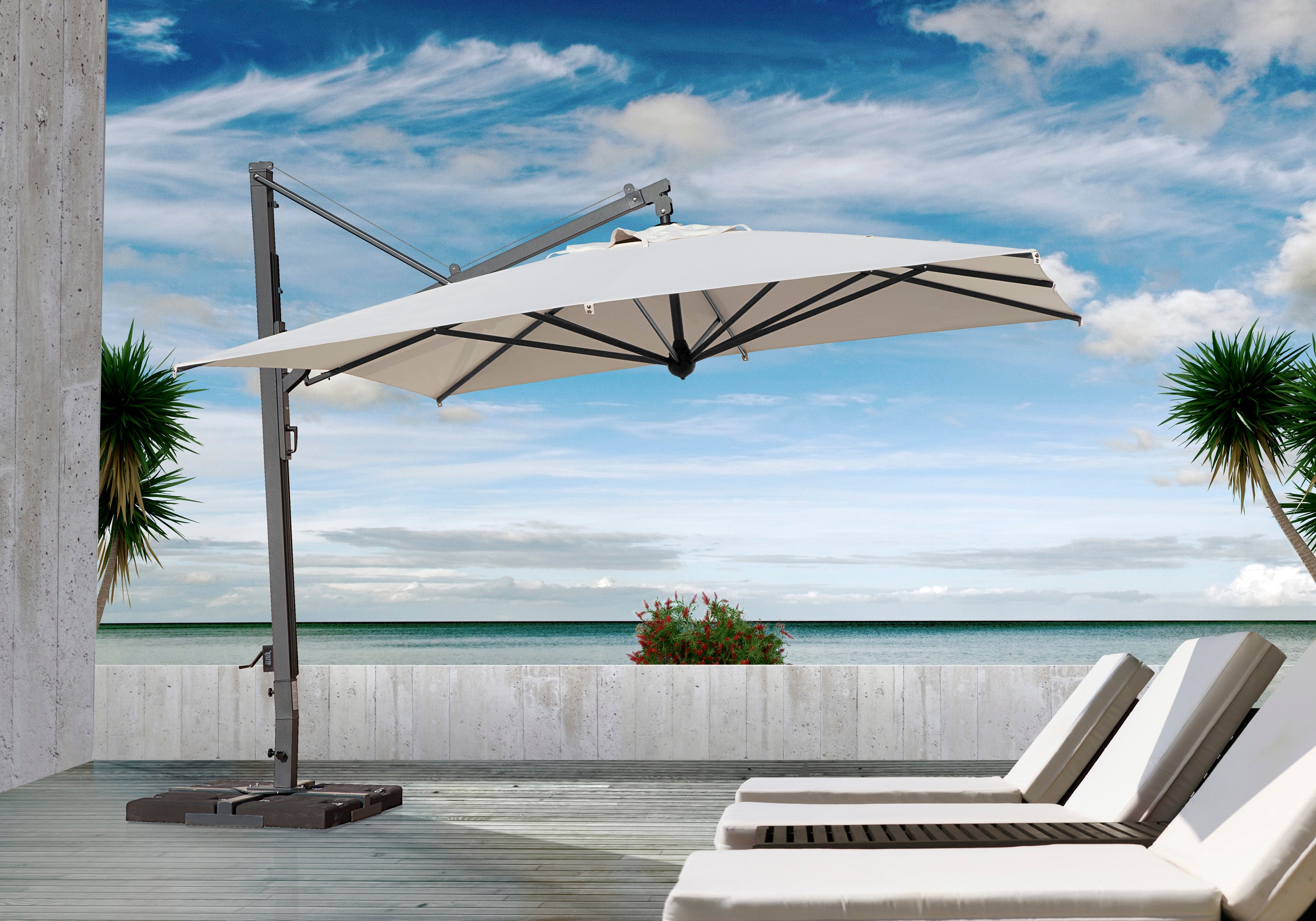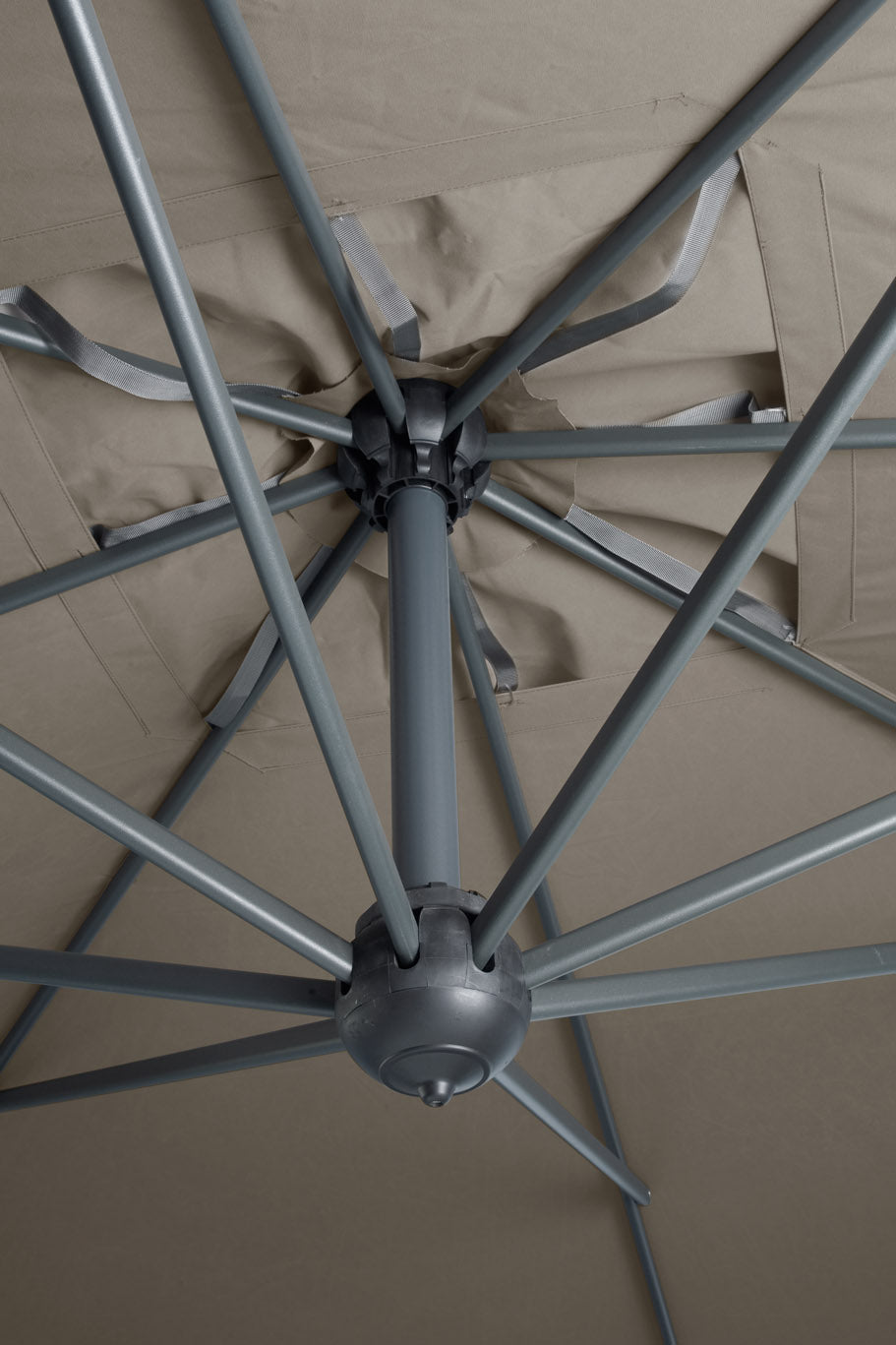 Innovatief systeem voor zwevende parasols dat openen en sluiten mogelijk maakt zonder tuinmeubilair te verplaatsen. Blijft bevestigd aan de mast, uniek door het onafhankelijke open- en sluitsysteem. Deze parasol is ook te verkrijgen met volant. Lees hierover meer bij de producteigenschappen onder de afbeelding. Meer informatie