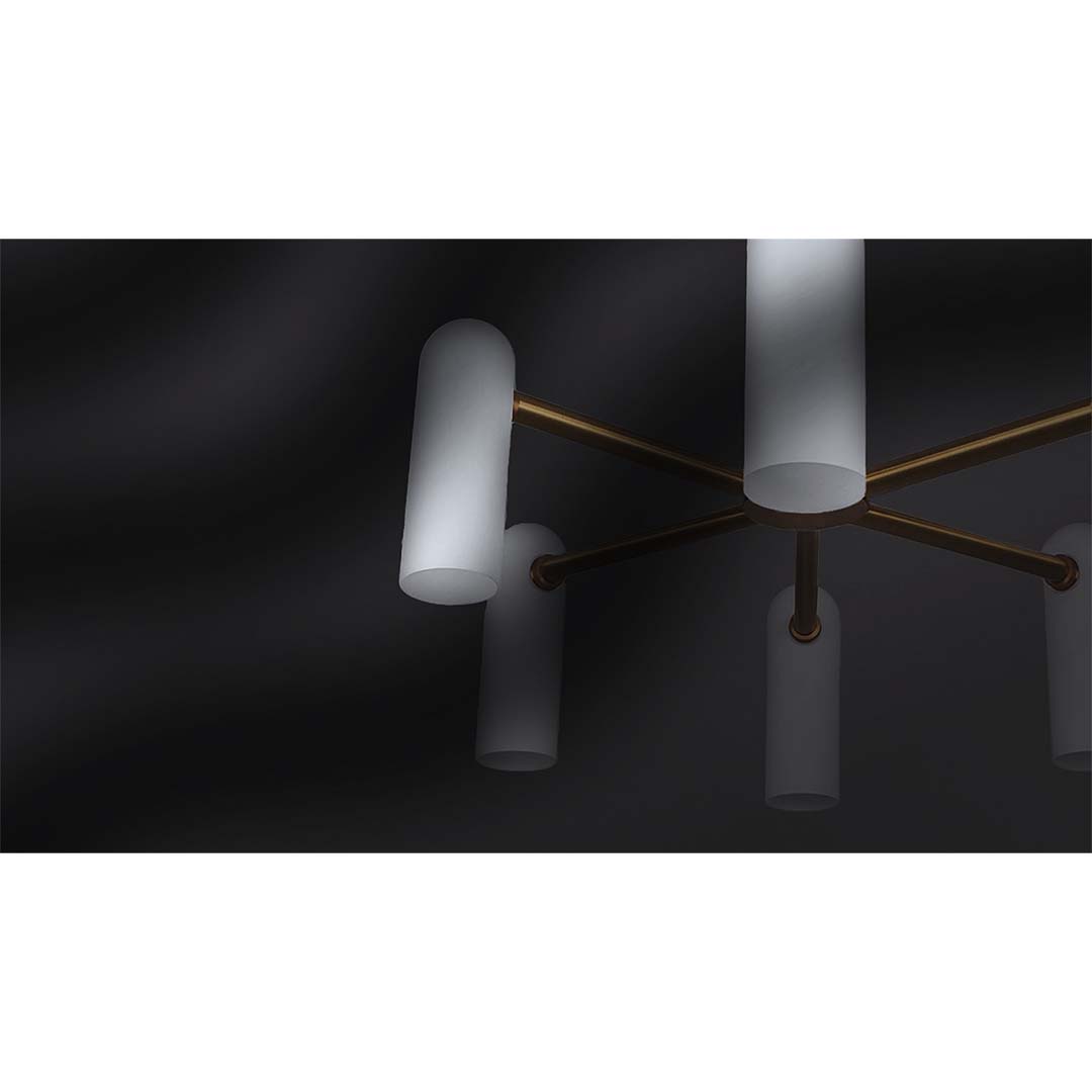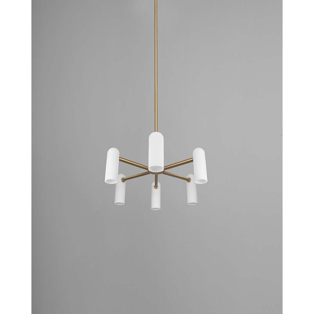 Spaken van messing bevatten slanke lampenkappen, de cirkel van licht creëert een planetair effect in deze opvallende ronde kroonluchter. Meer informatie