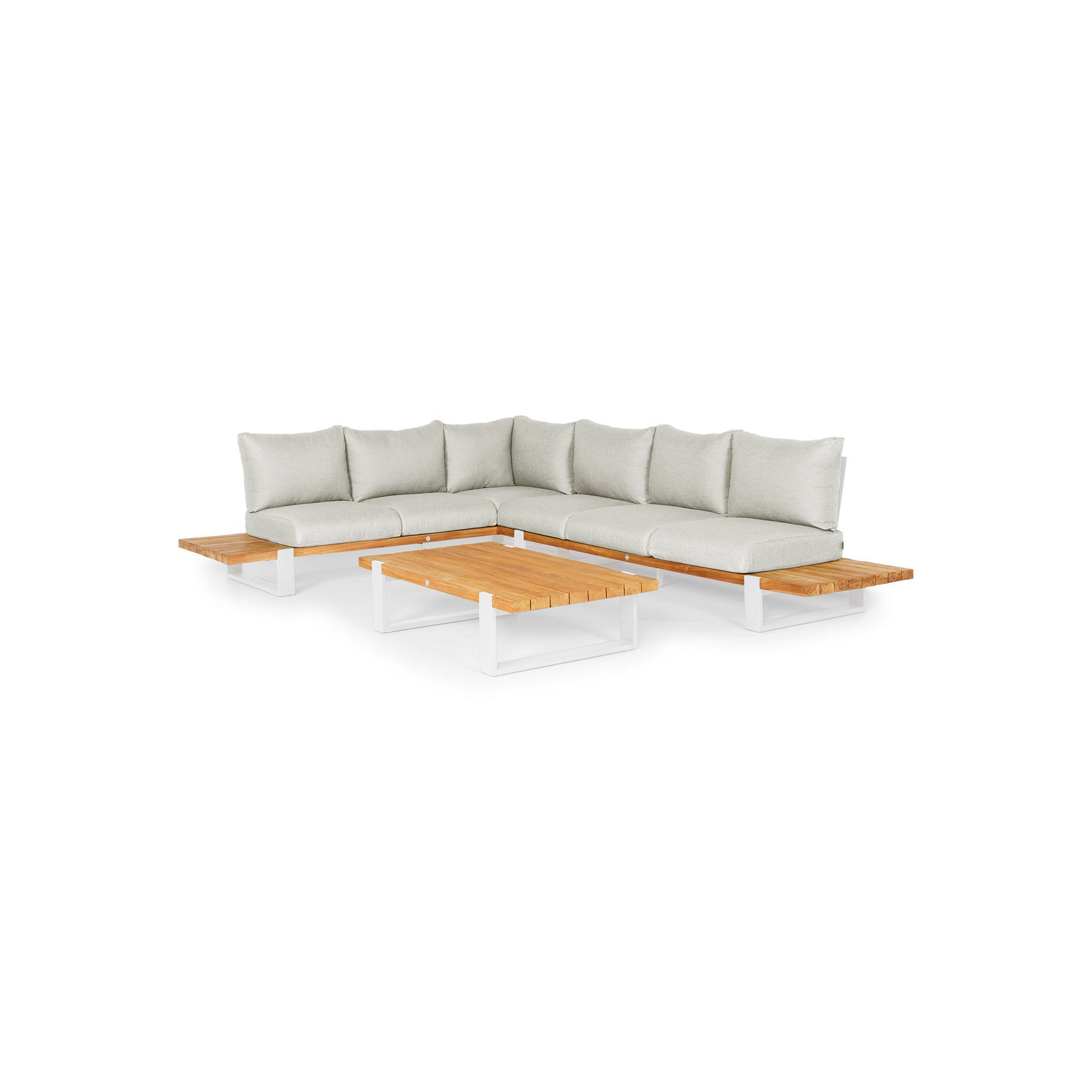 De Loungeset Nardo 3-delig - natural combineert een modern design met hoogwaardige materialen. Het stevige teakhouten frame zorgt voor een duurzame constructie, terwijl de kussens met Quick Dry Foam® en Sunproof®-stof snel drogen en bestand zijn tegen diverse weersomstandigheden. Met royale afmetingen biedt deze set optimaal comfort voor ontspannen momenten in de tuin of op het terras.