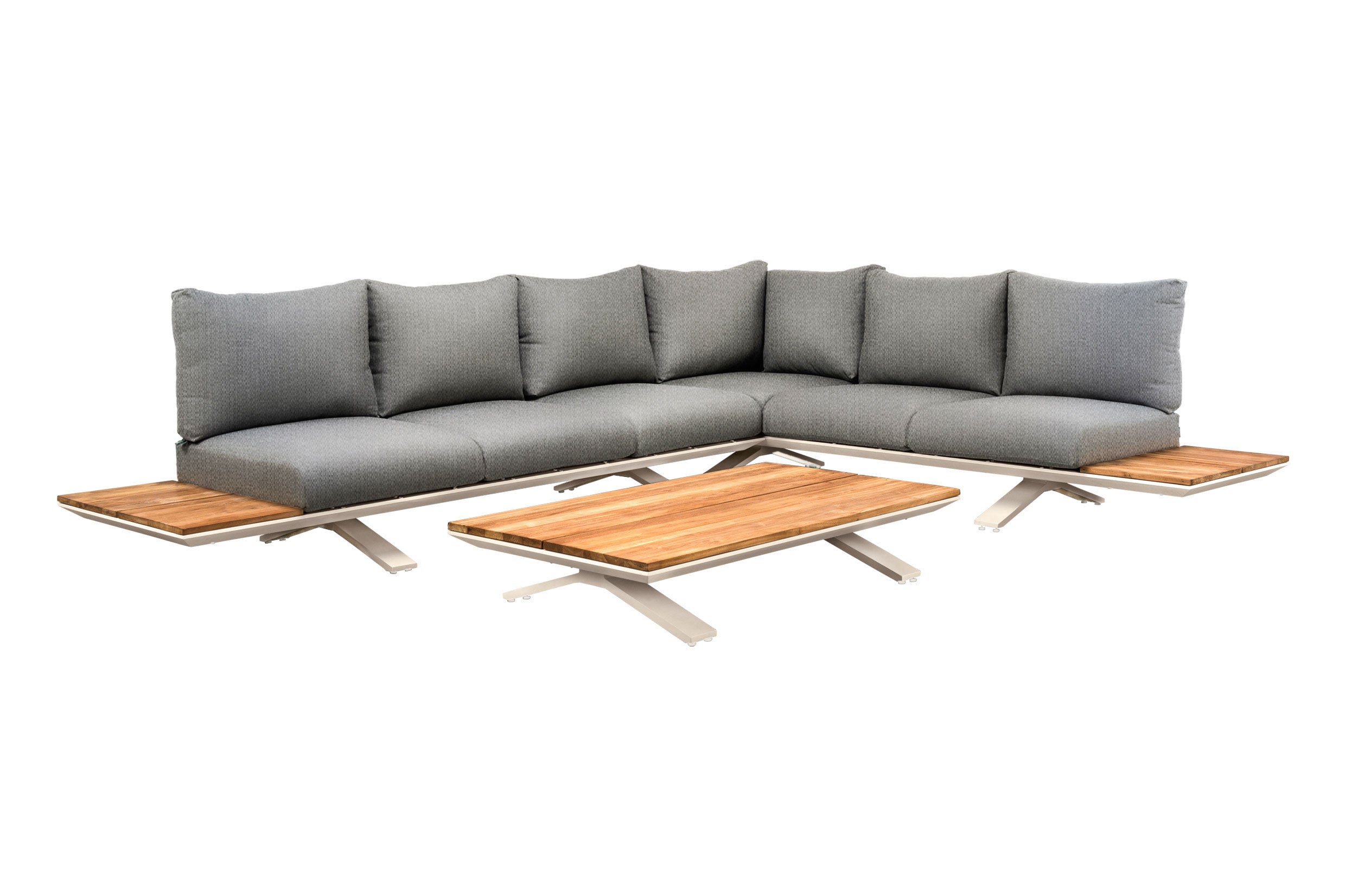 Loungeset Stockholm large - Teak - Matt White - Soft Grey