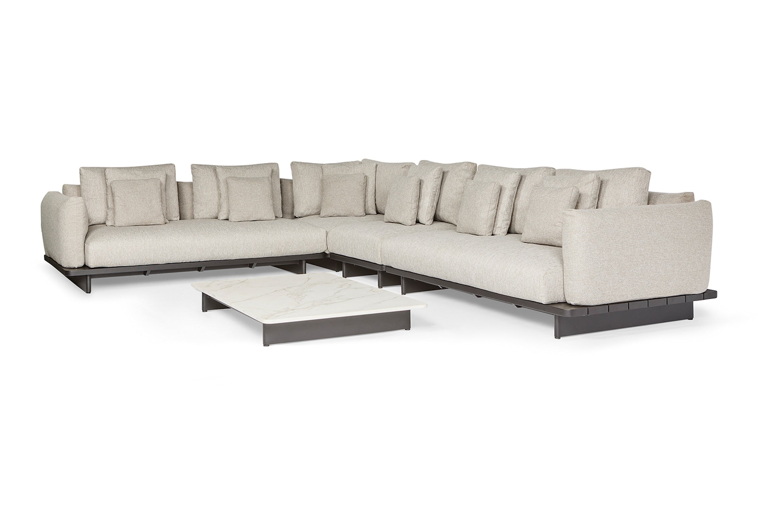 De 5-delige loungeset Volar van SUNS is jouw ultieme zithoek. Kenmerkend is de royale kussenpartij die je normaal alleen in het interieur tegenkomt. Het geeft SUNS Volar een warme en comfortabele uitstraling. Het geheel staat op een frame van hoogwaardig industrieel aluminium. Deze dikkere kwaliteit aluminium geeft de set een solide constructie en een lange levensduur.