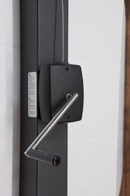 Dankzij het telescoopsysteem kunnen zelfs grotere parasols boven de tafel gesloten worden, wat deze zeer geschikt maakt voor professioneel gebruik. Deze vrijhangende parasol heeft een mast en baleinen van grijs geëpoxeerd aluminium en staal. Deze parasol is ook te verkrijgen met volant (dit is een decoratieve strook stof aan de rand) in de kleuren Ecru, Terracotta en Bordeaux. Heb je interesse in een parasol met volant of wil je meer weten over de mogelijkheden? Neem direct contact met ons op! Bel 020-2111026, chat met ons, of stuur een e-mail naar info@solfelt.nl. We adviseren je graag over maat, materiaal, ontwerp en alle andere vragen die je hebt. Let op: de parasol op de afbeelding is voorzien van een volant. Als je ook geïnteresseerd bent in een parasol met volant, neem dan contact met ons op. De kleuren op de website tonen de opties zonder volant.