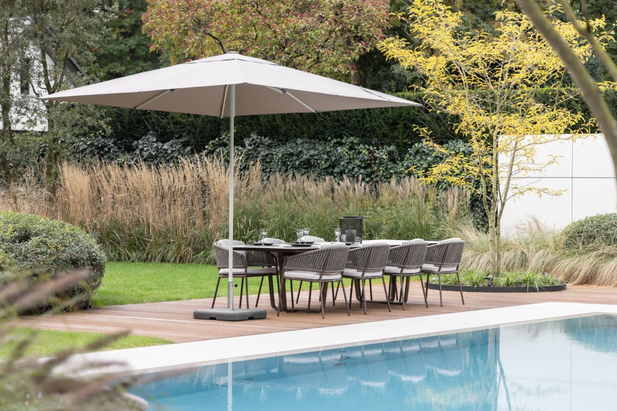 Parasols bieden niet alleen schaduw en bescherming tegen de zon, maar creëren ook een gevoel van geborgenheid wanneer je buiten zit. Als je op zoek bent naar een parasol die echt iets bijzonders toevoegt aan je tuin, is de Amado parasol een uitstekende keuze. De Amado is verkrijgbaar in een rond formaat van 3,5 meter doorsnede en een vierkant formaat van 3 bij 3 meter.