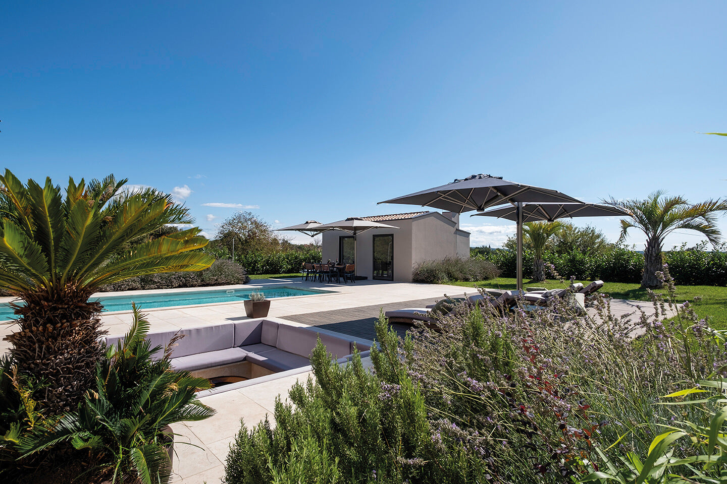 Deze parasol beschikt over een intrekbare structuur die openen en sluiten boven tafels en stoelen mogelijk maakt zonder het meubilair te verplaatsen. Specifiek ontworpen om in een T-vorm te staan, wat zorgt voor een brede dekking en symmetrische schaduwverdeling, ideaal voor situaties waarin een centrale schaduwplek nodig is. Meer informatie