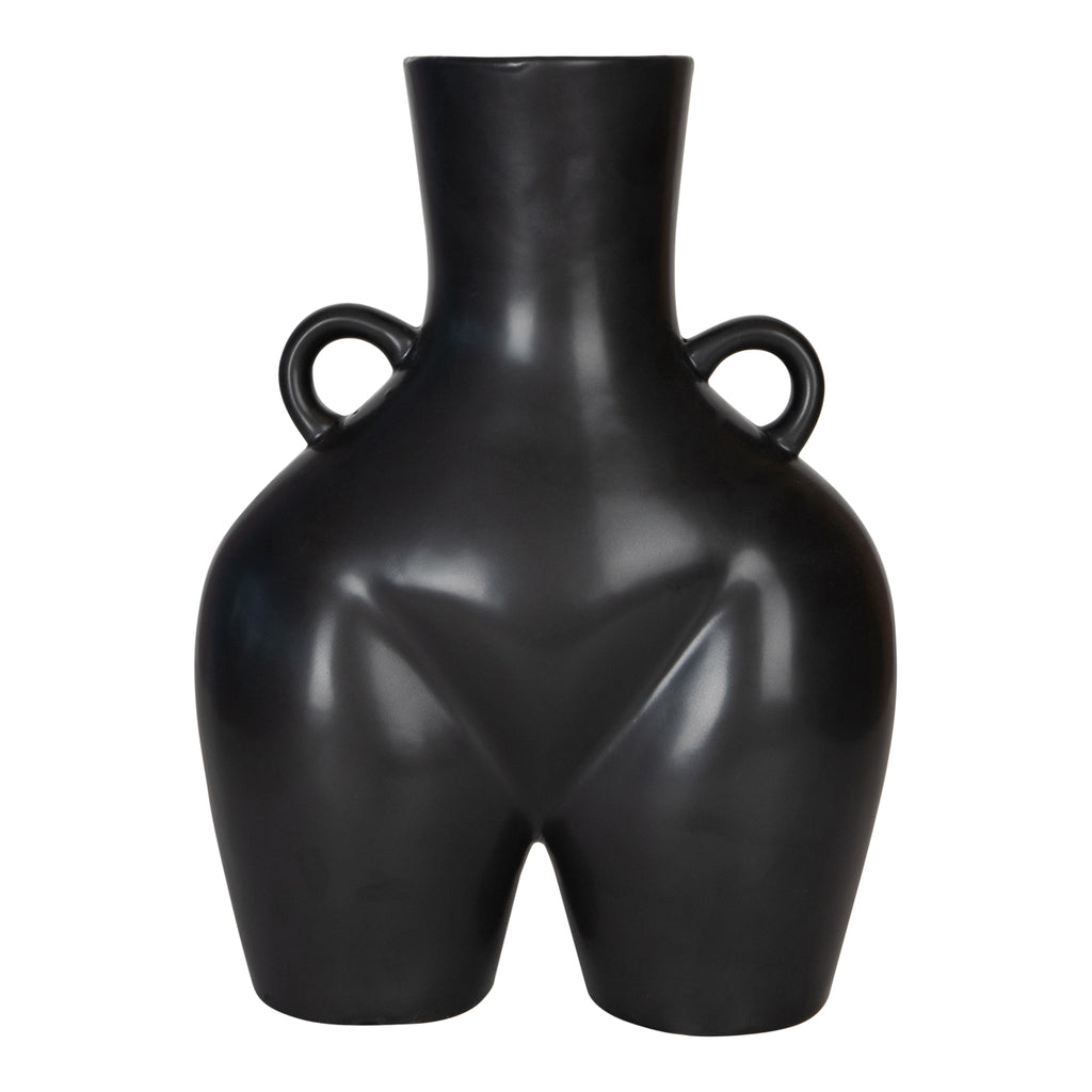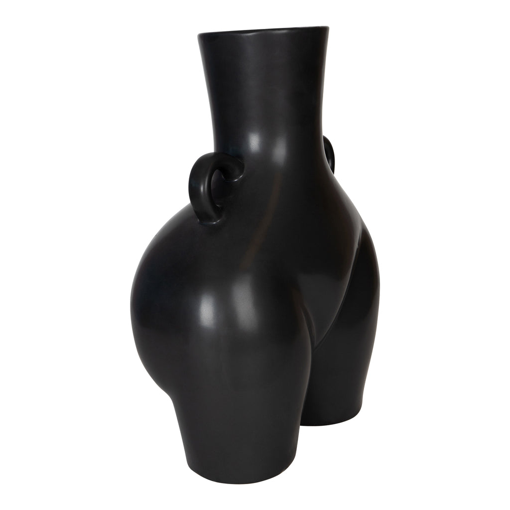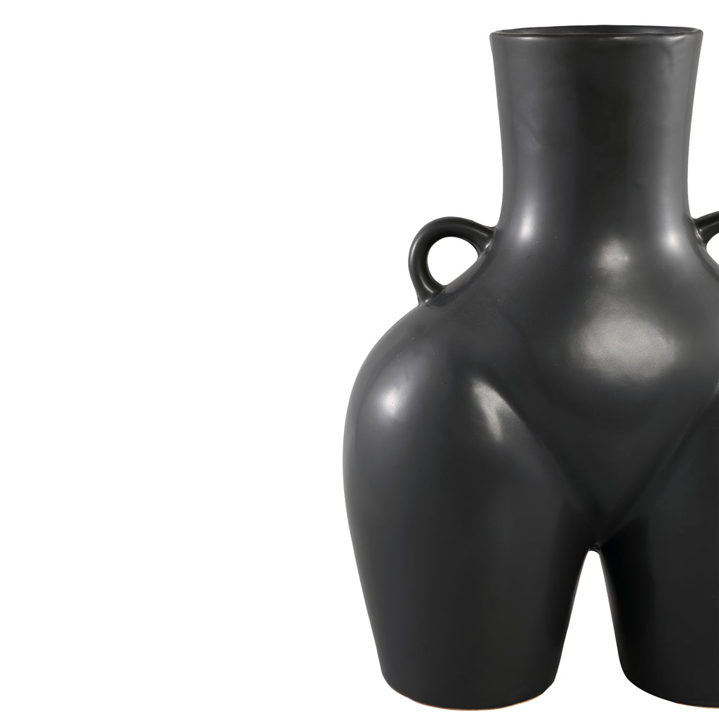 De Pot Casty is een opvallende, zwarte keramische pot met een bijzondere vorm van vrouwelijke heupen, ideaal voor artistieke styling.