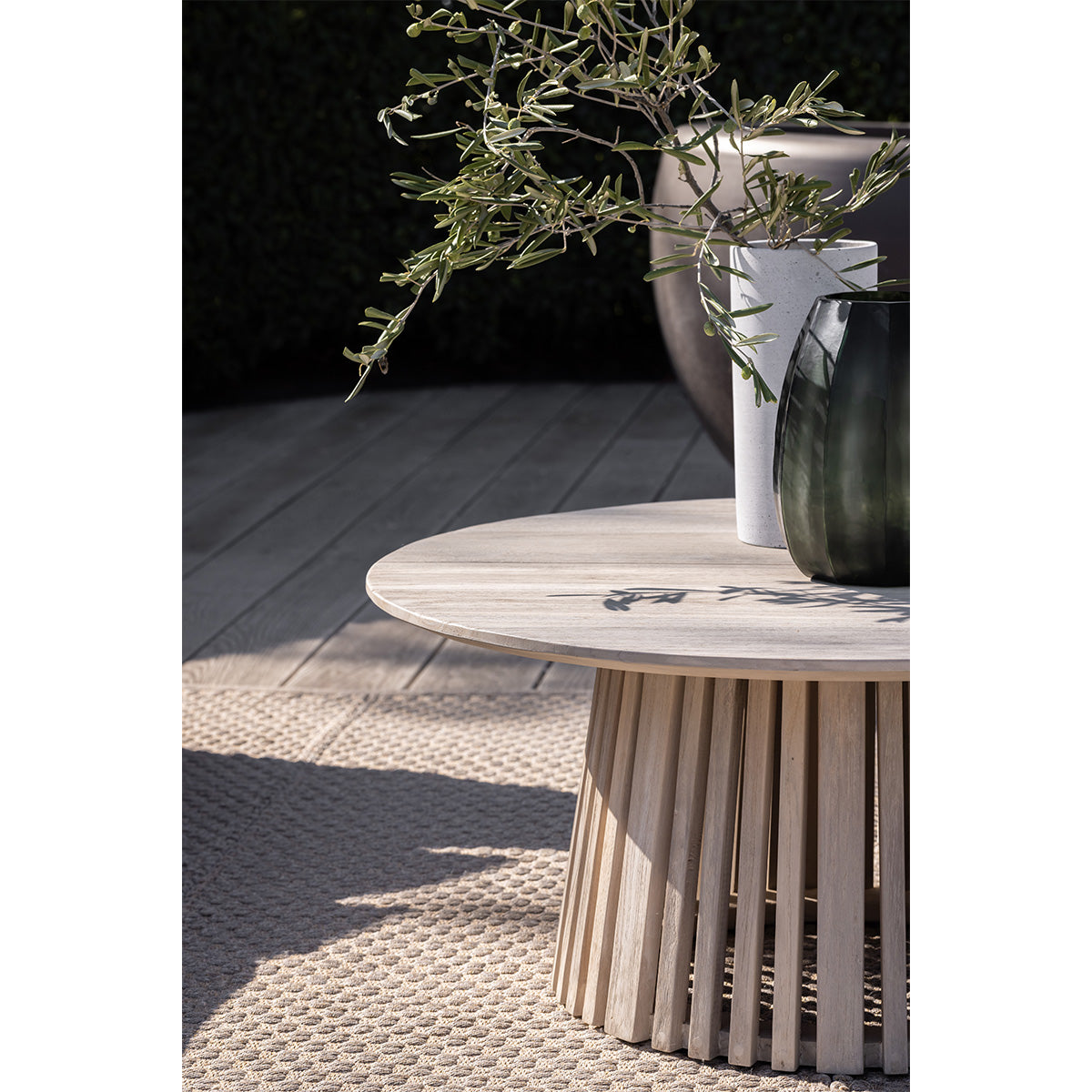 Een tafelserie waar de kwaliteit vanaf spat en die volledig uit plantage teakhout bestaat: dat is Lasse. De vergrijsde teakhouten tafels zijn organisch vormgegeven en hebben een Scandinavische uitstraling. Het prachtige houtwerk van de poot is prominent aanwezig dankzij de rondom verticaal gepositioneerde latten. De salontafel heeft een doorsnede van negentig centimeter. Voor een Lasse bijzettafel heb je de keuze uit twee hoogtes en uit twee maten wat betreft het tafelblad. Je kunt de bijzettafels ook bij elkaar zetten, of de lagere tafel gedeeltelijk onder de hogere bijzettafel plaatsen.