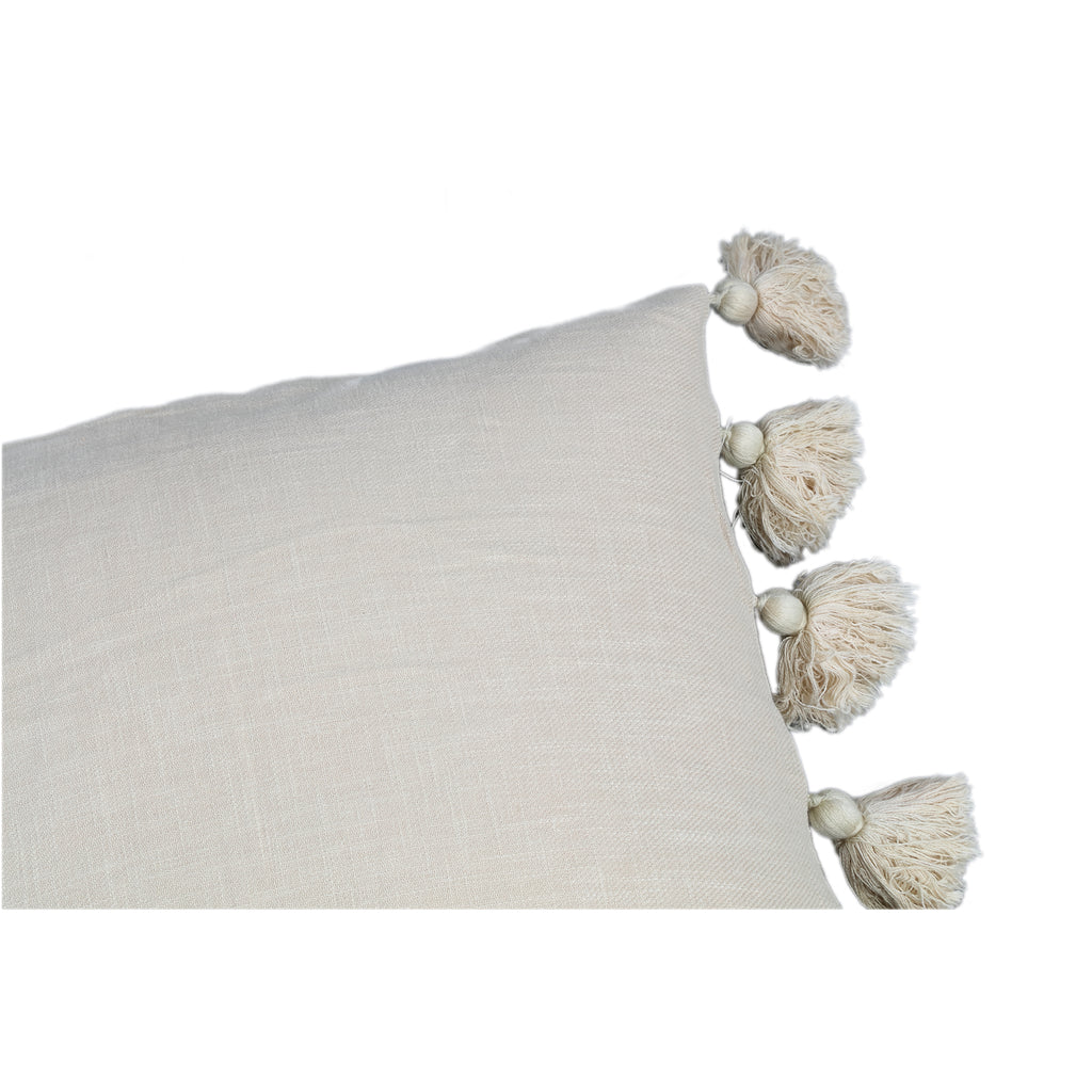 Het Sierkussen Dolly - Crème heeft een schattig ontwerp met franjes, perfect voor een gezellige uitstraling.