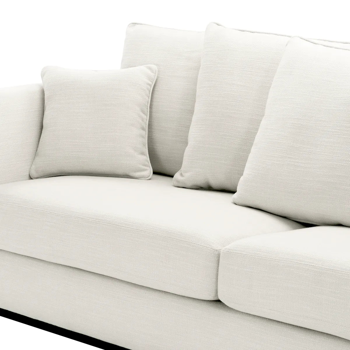 Geef een modern tintje aan uw woonkamerensemble met de prachtige Taylor Sofa, die een strak gevoerd silhouet combineert met ultiem comfort. Met een zwarte basis, een witte Avalon-bekleding en zeven comfortabele kussens, past het moeiteloos bij al uw bestaande decoraties.