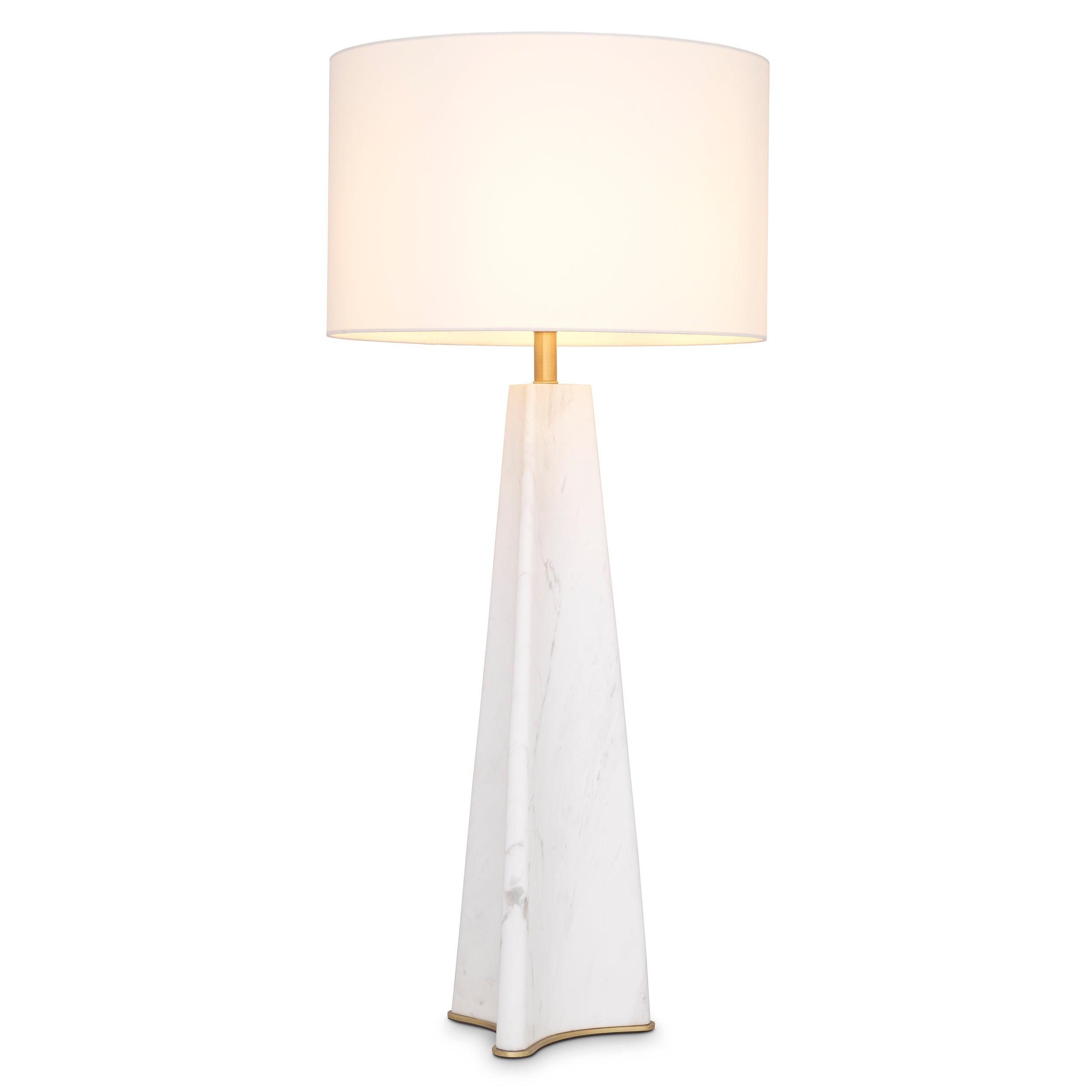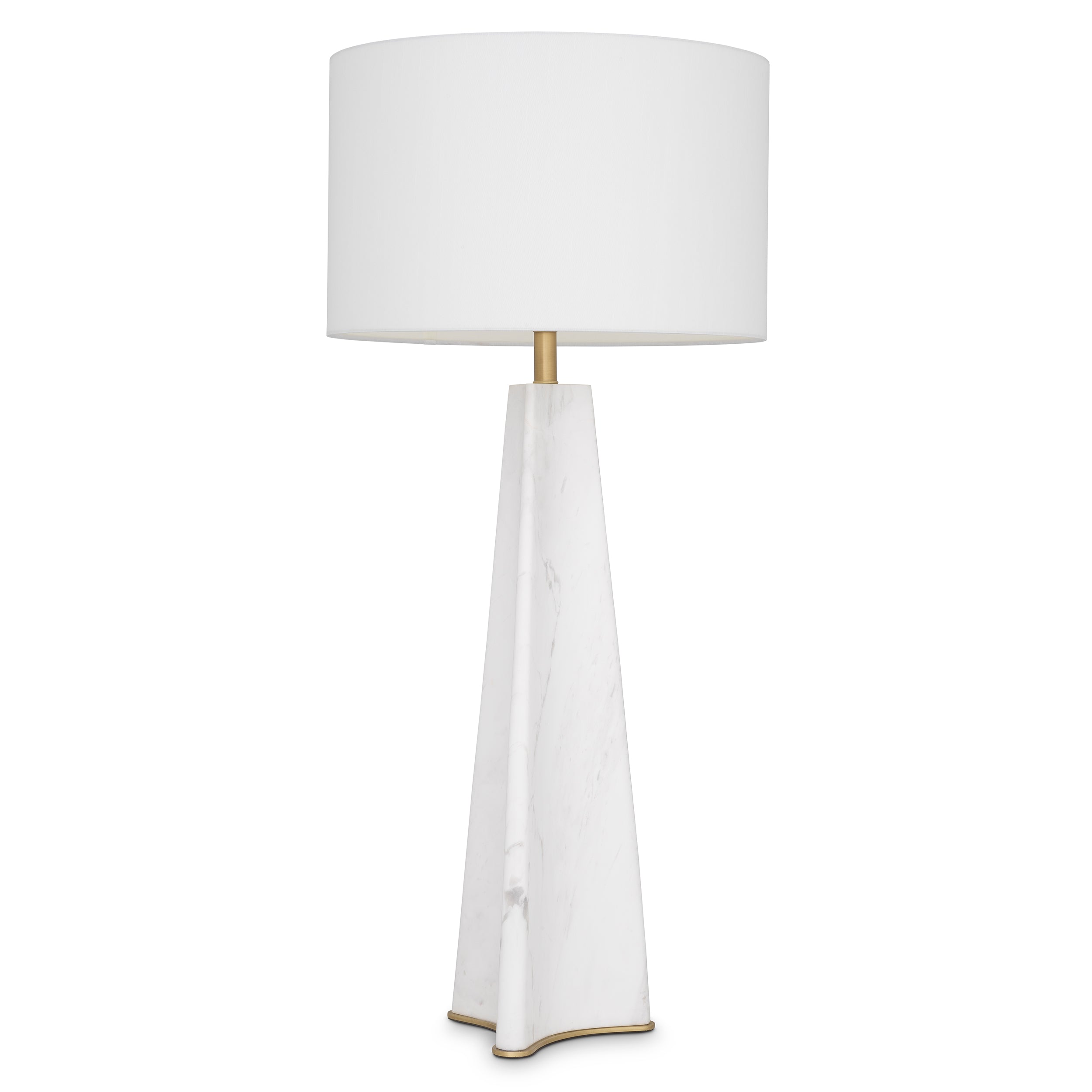 Een tijdloze klassieker die gemakkelijk in zowel moderne als traditionele omgevingen kan worden geplaatst, tafellamp Benson toont kwaliteitsvol vakmanschap met behulp van de beste materialen. Het staat op een mooie taps toelopende basis van gezoet wit marmer en wordt compleet geleverd met een ronde witte kap die contrasteert en daardoor de vorm van de basis benadrukt.
