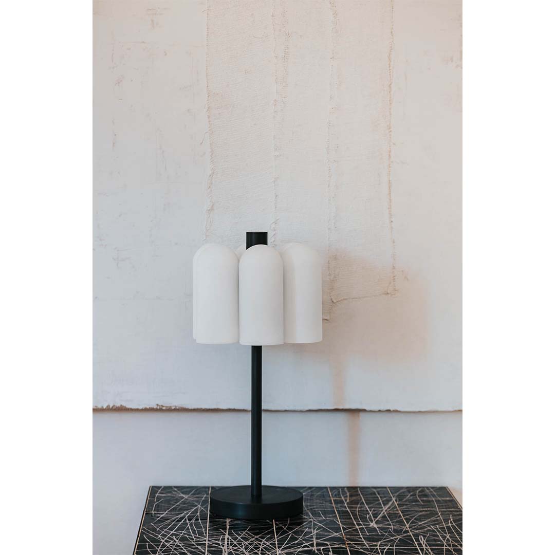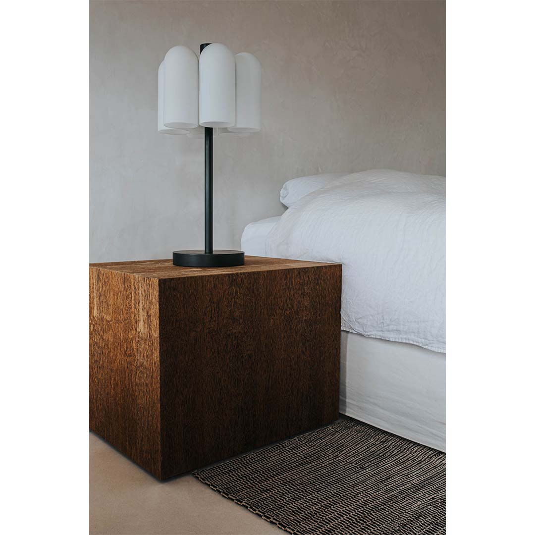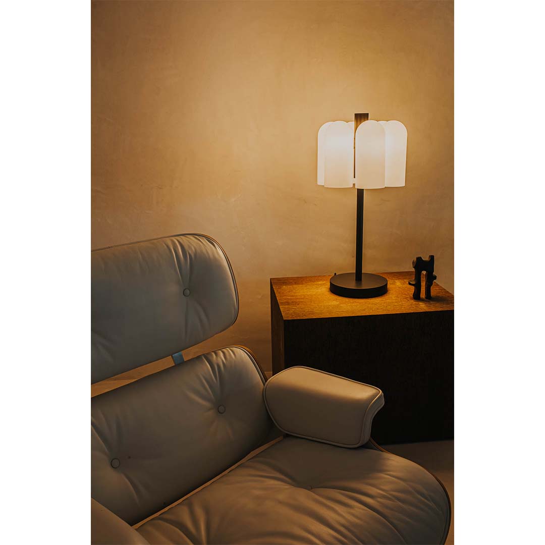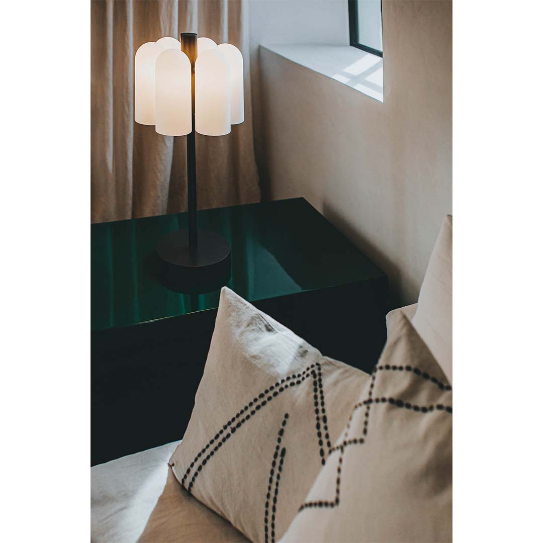 Licht is een krachtig hulpmiddel en een verleidelijke kracht. De stevige voet van deze tafellamp zorgt voor een stabiel instrument. Zes langwerpige cilinders zorgen voor een rustgevende verlichting.