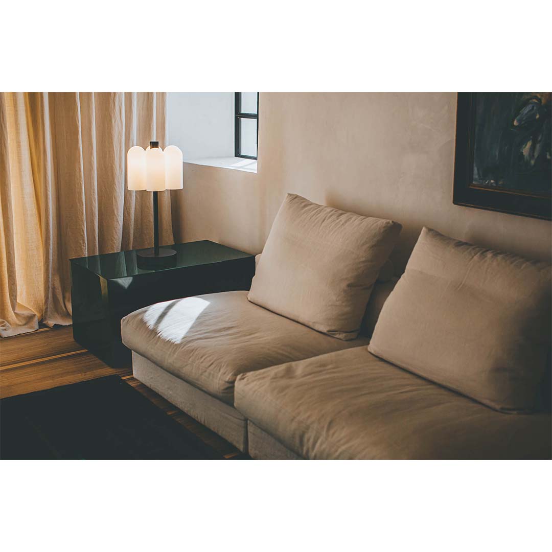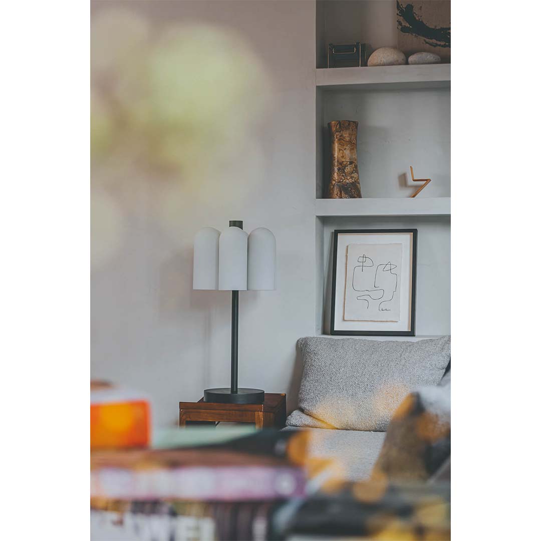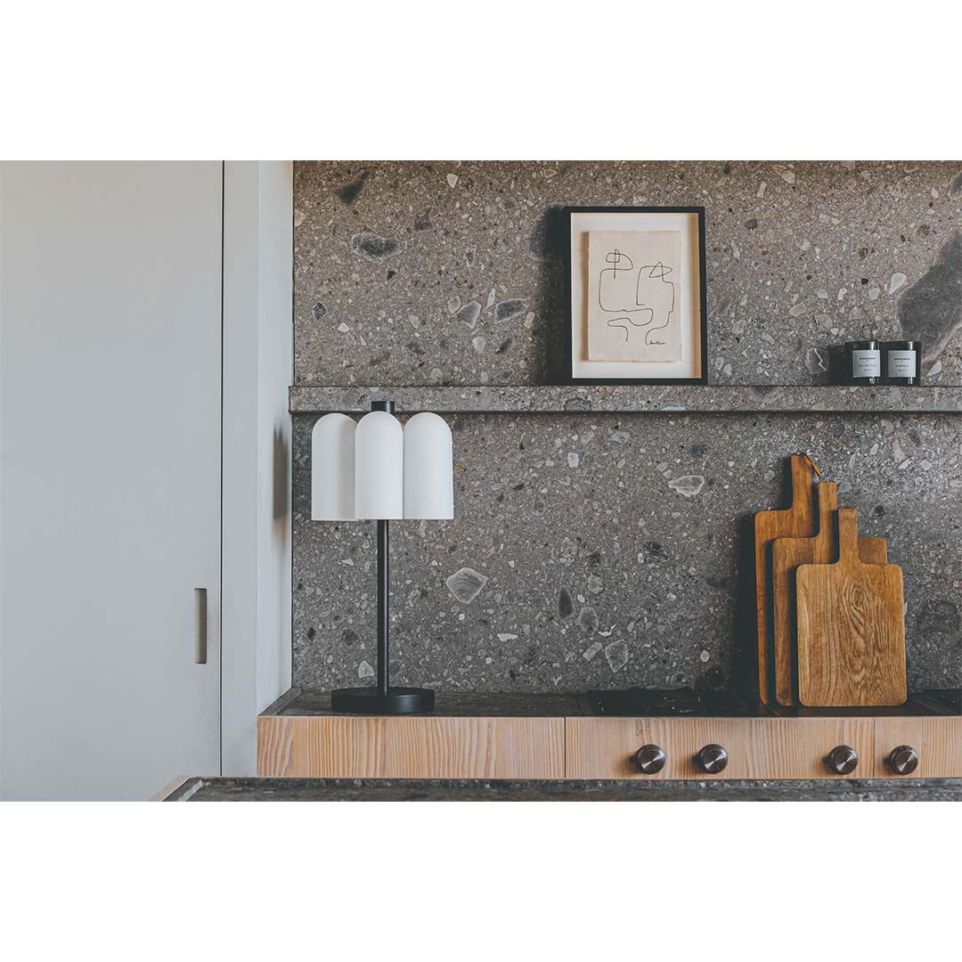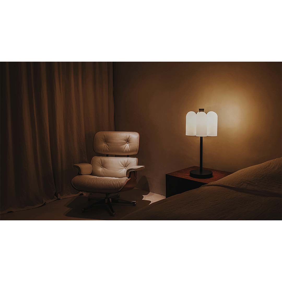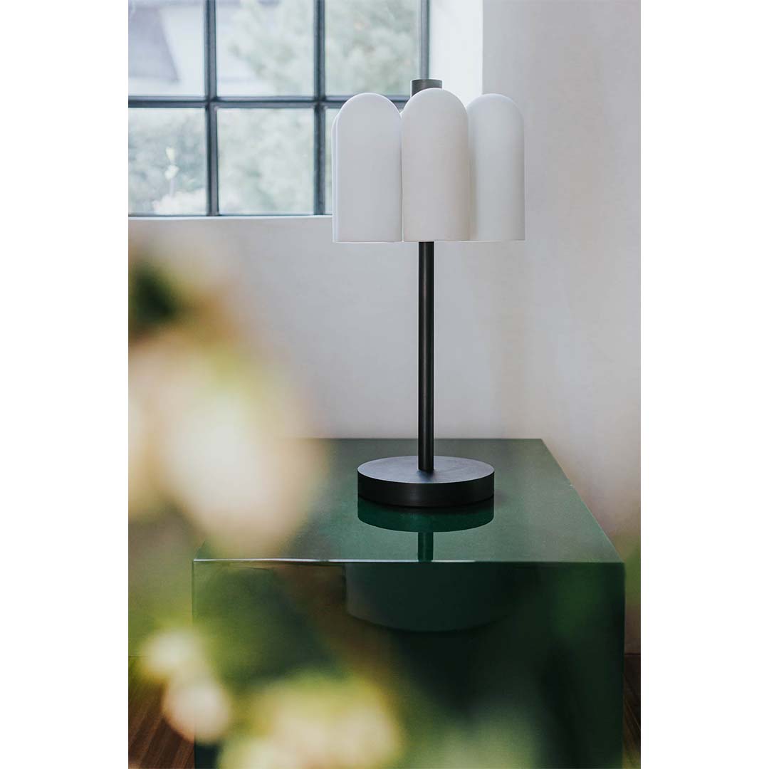 Licht is een krachtig hulpmiddel en een verleidelijke kracht. De stevige voet van deze tafellamp zorgt voor een stabiel instrument. Zes langwerpige cilinders zorgen voor een rustgevende verlichting.