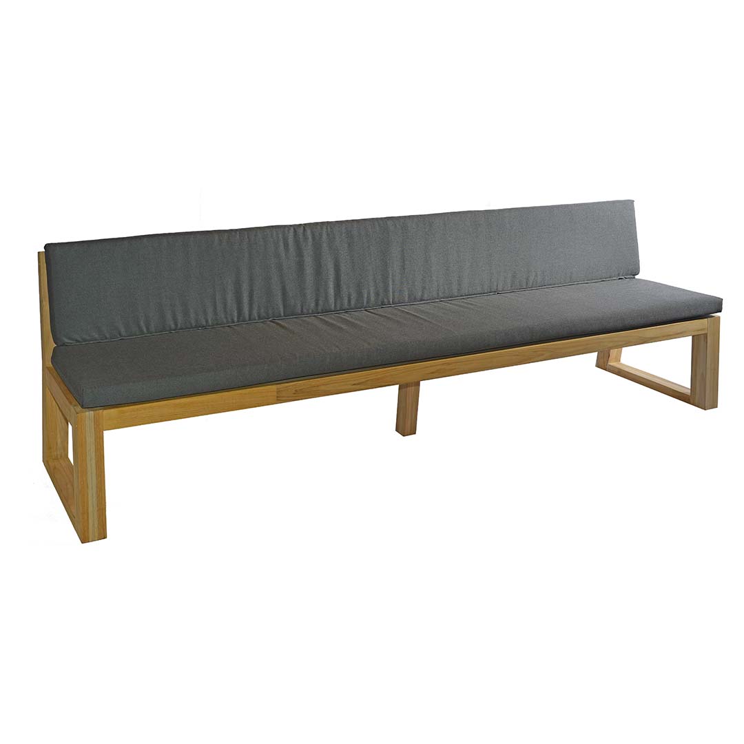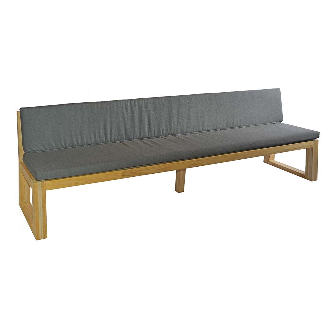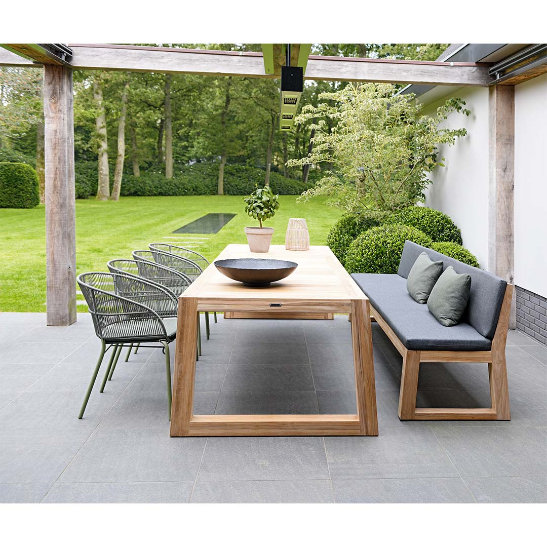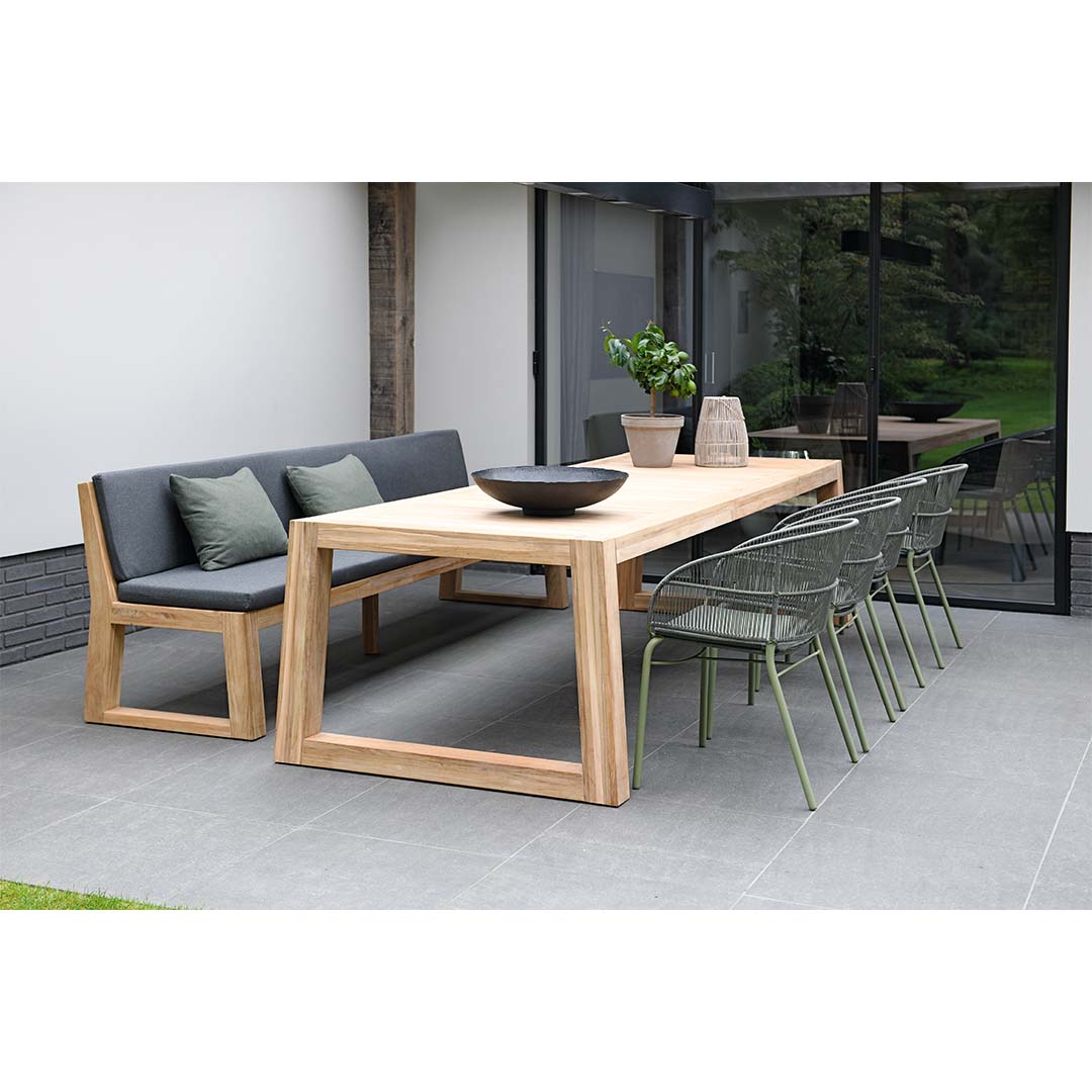 Een van de meest populaire collecties van Max & Luuk is de Mason lijn. De Tuinbank Alec 270 bestaat uit reclaimed teak hout. Deze Alec collectie is op deze bestseller gebaseerd, met als aanpassing dat hij uit original plantage teak bestaat. Hierdoor is het hout gladder, strakker afgewerkt, maar zal net als de Mason collectie na verloop van tijd fraai vergrijzen. De bank uit deze collectie is standaard voorzien van een Sunbrella zit- rugkussen.