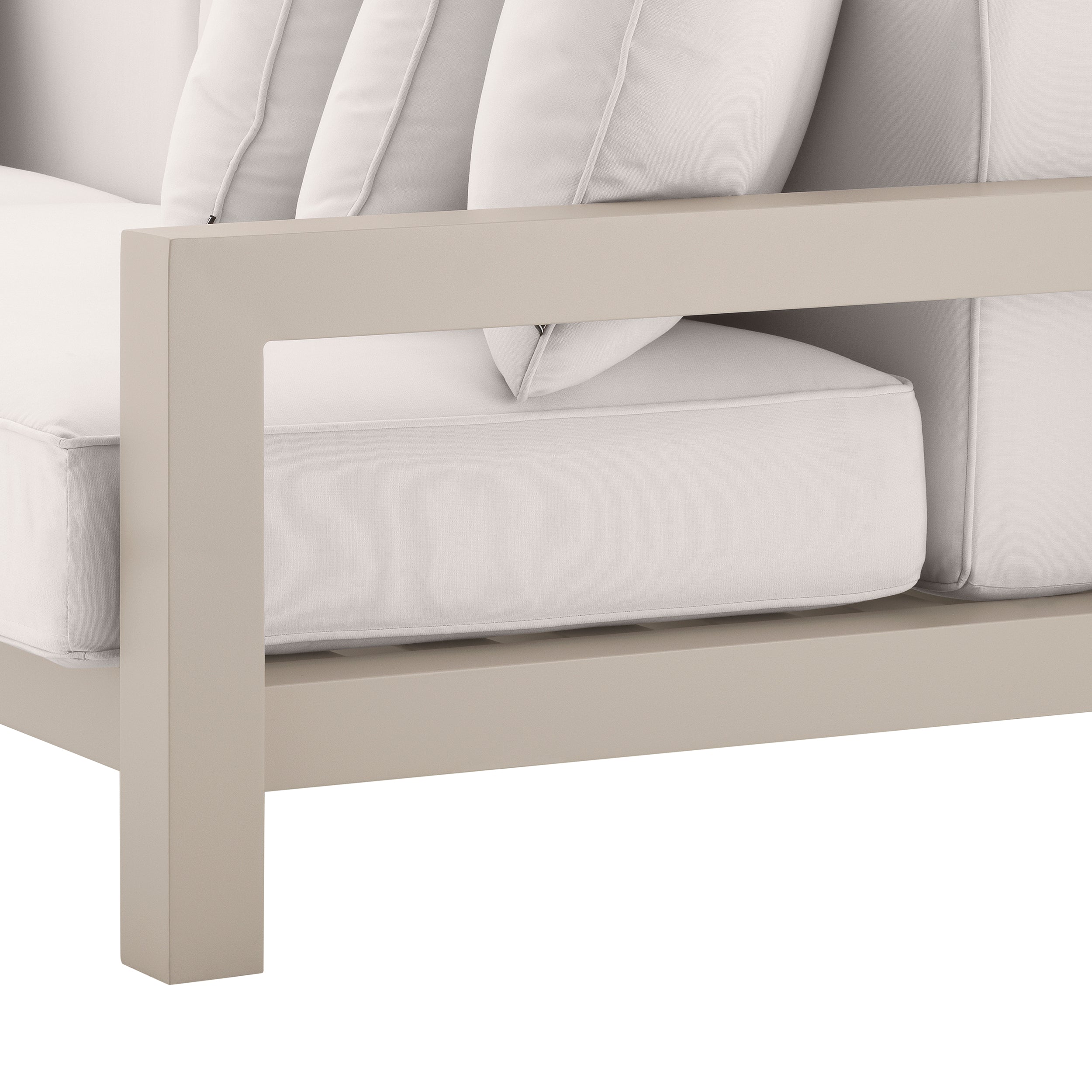 Sofa Cap-Antibes onderscheidt zich door een strak ontwerp met eenvoudige lijnen en voegt een eigentijdse stijl toe aan uw buiteninrichting. Deze luxe bank is vakkundig vervaardigd uit duurzaam aluminium en voorzien van een gepoedercoate zandafwerking. De zit- en rugkussens zijn bekleed met Sunbrella canvas.