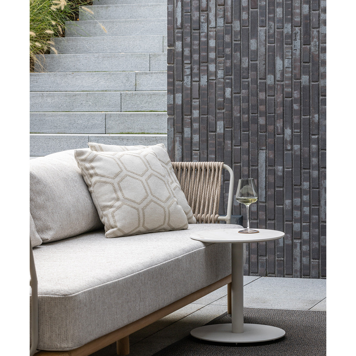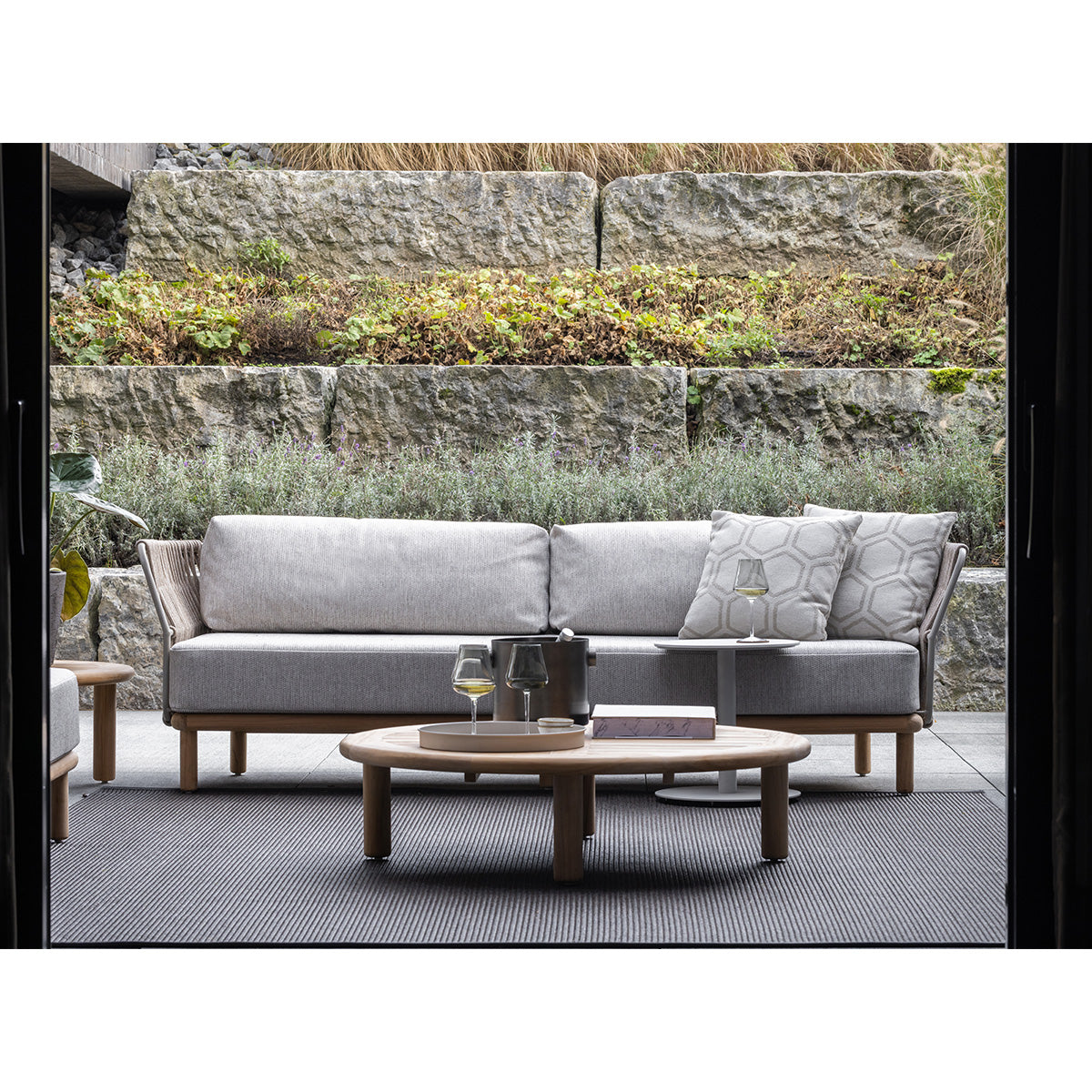 De Levante Tuinbank is één van de pareltjes uit de Borek-collectie. De Levante sofa en fauteuil zijn ontworpen door het Italiaanse ontwerpersduo Meneghello Paolelli, ook verantwoordelijk voor het ontwerp van de succesvolle Softline-collectie van Borek. ‘Levante’ betekent ‘het oosten’; een impliciete verwijzing naar de zonsopkomst. En van de zon is het extra genieten vanuit een Levante. De sofa heeft een royaal formaat van bijna tweeënhalve meter. De Levante staat stevig op ronde pootjes die weer perfect passen bij de vormgeving en het teakhout van de Bassano-tafels. De aluminium Peniche-tafelcollectie sluit overigens ook naadloos aan bij de materialen en kleurstelling van de Levante.