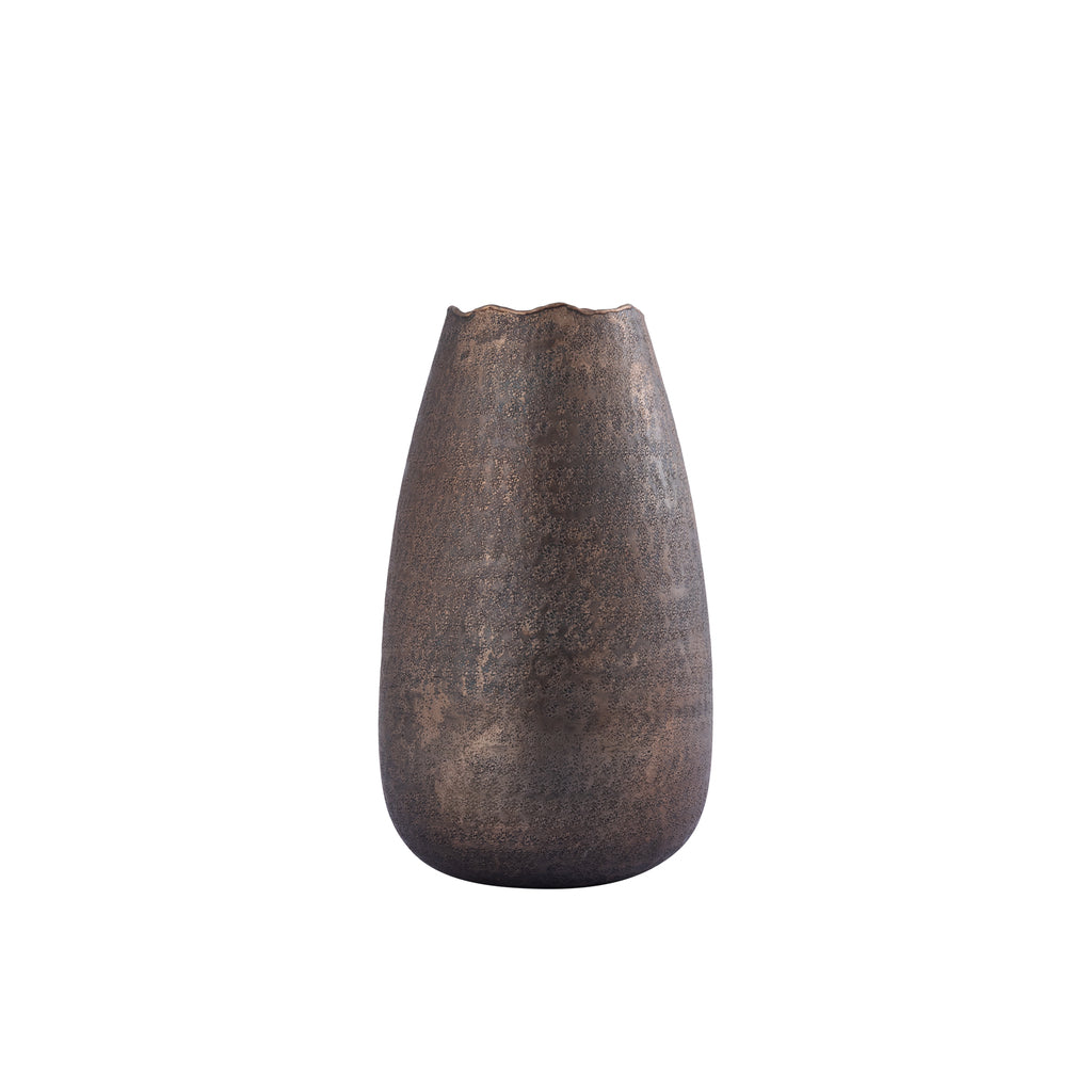 De Vaas Semin - Koper - S is een kleine rustieke pot van koper met een golvende rand, ideaal voor kleine bloemstukken.