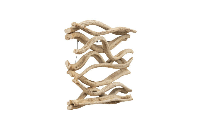 Wijnstok schors en tak - wat vroeger als onbruikbare delen van een boom werd beschouwd wordt nu gebruikt om deze prachtige Vine Wall Tile te maken. Phillips Collection werkt actief samen met Thailand om groen hout te kopen en hernieuwbare bronnen te gebruiken. Gemaakt van wijnstokken die afzonderlijk in een oven zijn gedroogd en met de hand zijn gerangschikt het resultaat is een verzameling prachtige unieke stukken die uitblinken in het brengen van de schoonheid van de natuur in het huishouden.
