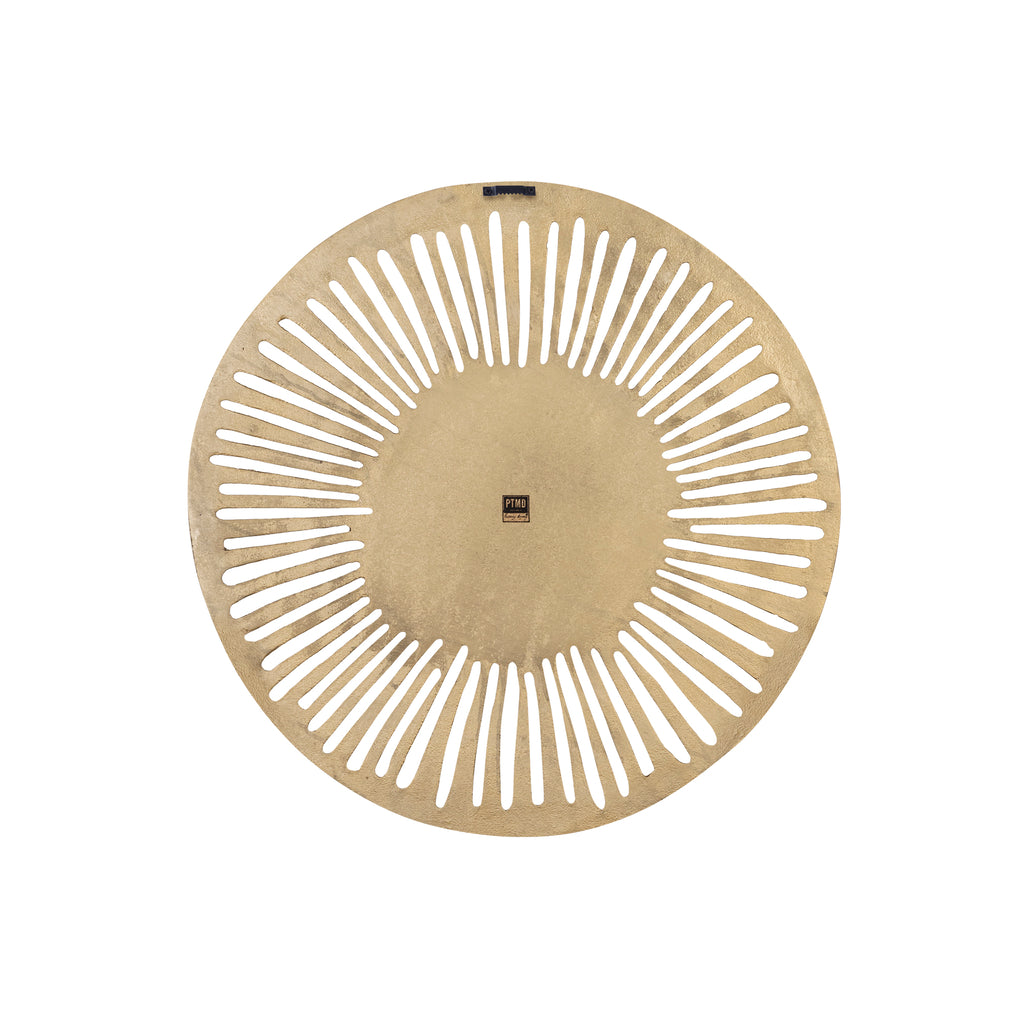 De Wanddecoratie Marjun is een gouden, gegoten aluminium wandpaneel met een open ronde vorm, ideaal voor een luxe uitstraling.