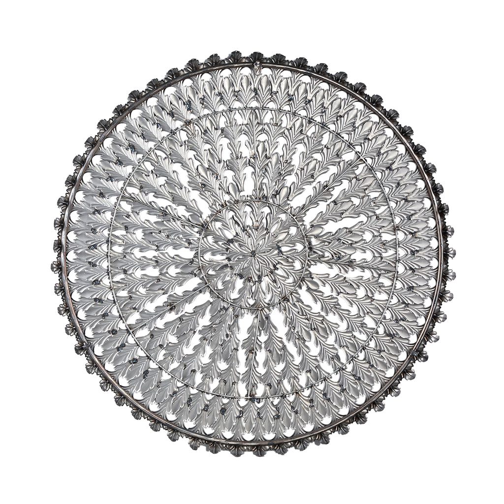 De Wanddecoratie Xavery - Koper - L is een rond ijzeren wandpaneel met een gegraveerde look in koper, perfect voor een luxe uitstraling in je interieur.