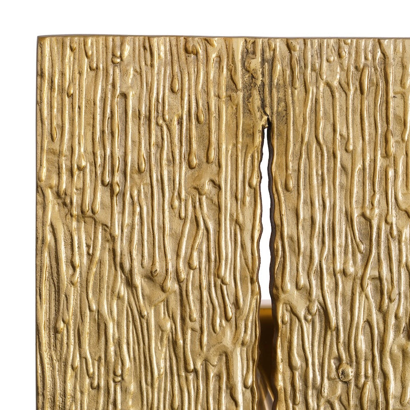 De Prato wandlamp van Eichholtz is een sculpturaal meesterwerk dat functionaliteit en artistieke expressie samenbrengt. De opvallende, textuurrijke voorzijde in gold finish is voorzien van een smalle, verticale opening waar het licht op subtiele wijze doorheen straalt. Een krachtig, stijlvol statement aan iedere wand.